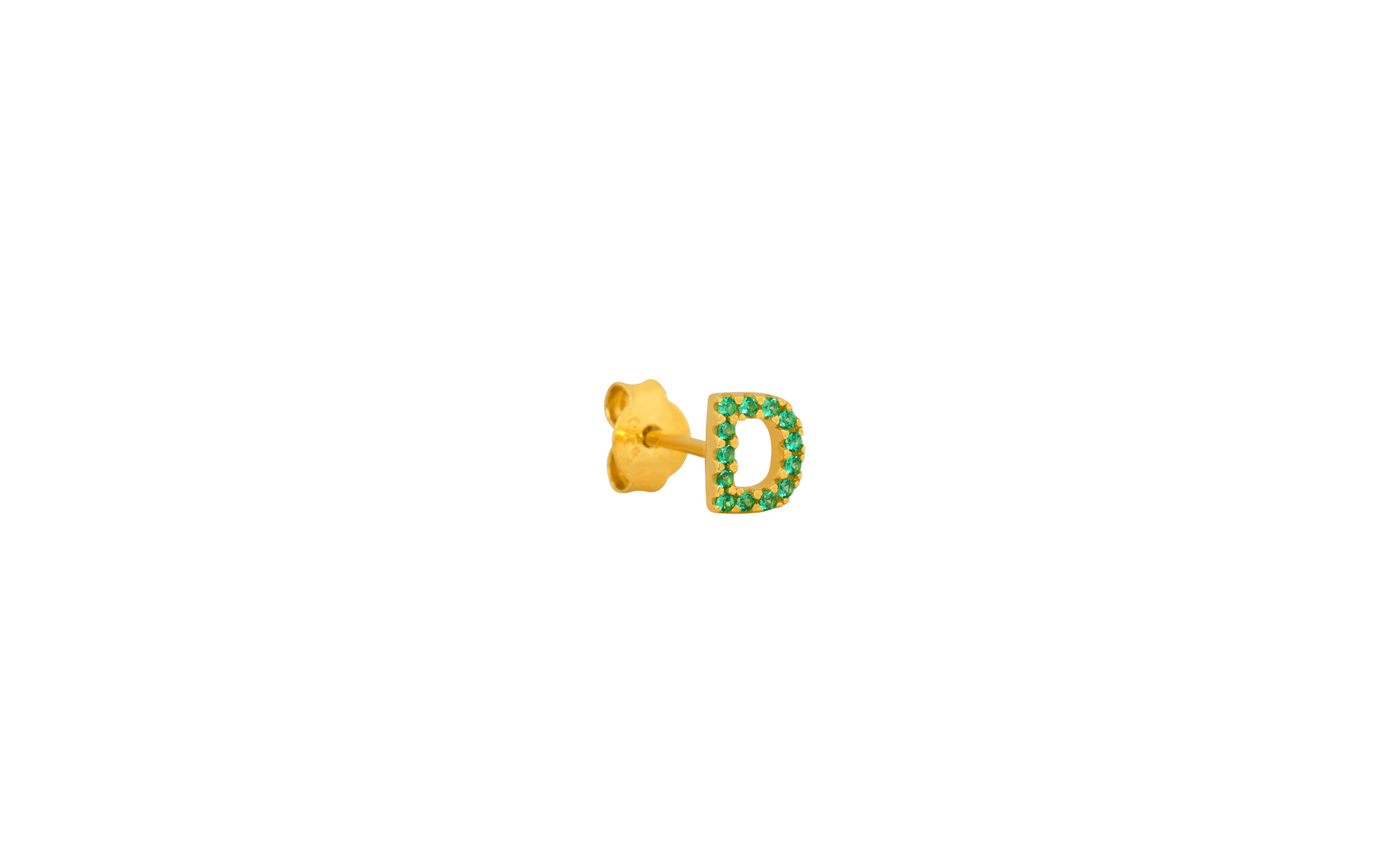 • This style is made from 100% recycled 22 karat gold plated 925 sterling silver with green zirconia stones.
