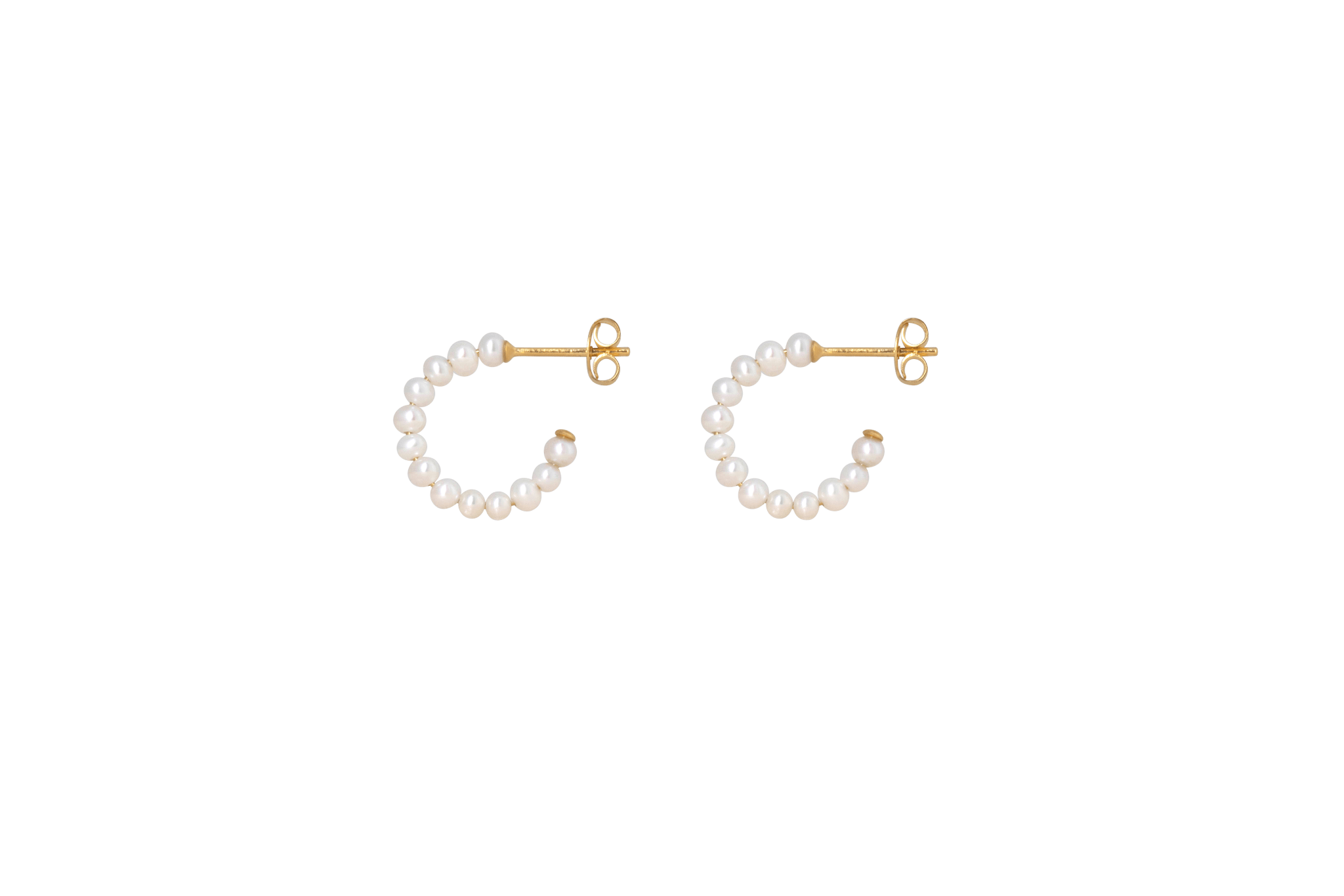 Elegant earrings with small and unique freshwater pearls. • This style is made from 100% recycled 22 karat gold-plated 925 sterling silver with freshwater pearls.