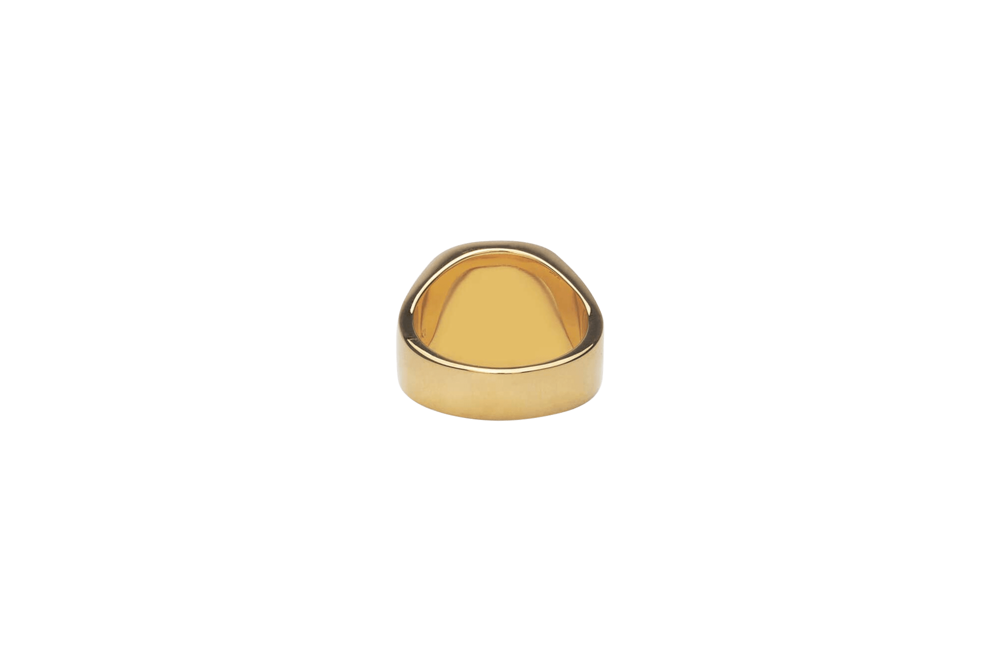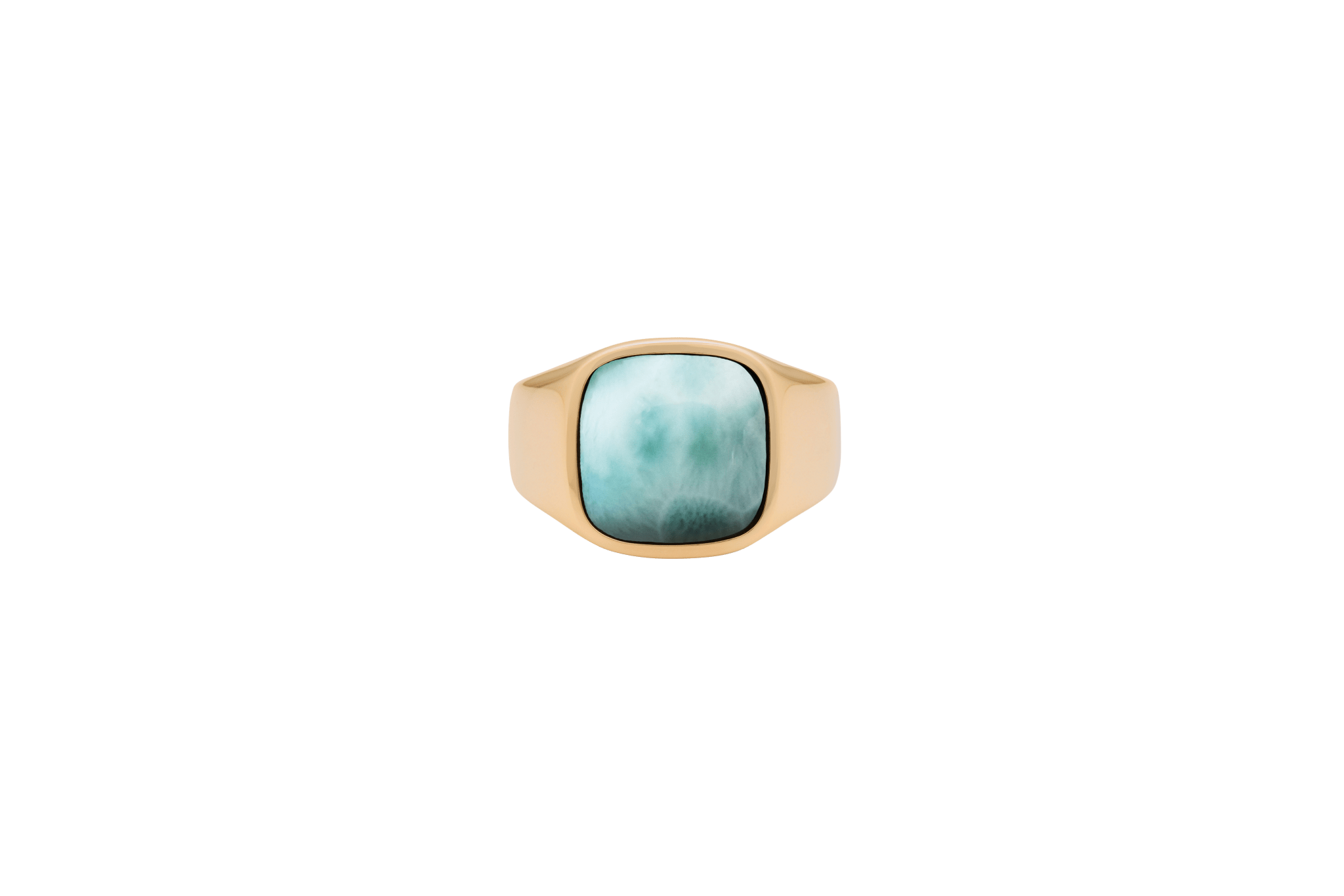 Unisex signet ring with soft edges and Larimar natural stone. • The style's top plate measures 14 x 14 mm.• This style is made from 100% recycled 22 karat gold-plated 925 sterling silver. • All our jewellery is stamped with 925 IX inside, which is our own hallmark registered with the Danish Assay Office.