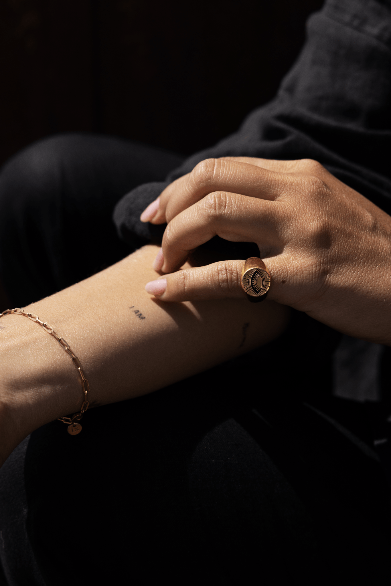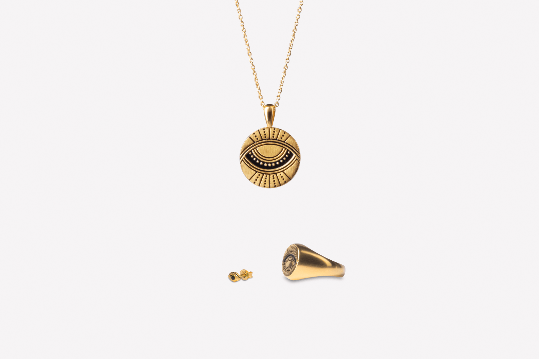 The eye and the heart represent the balance between self-discovery and self-love. The ring is a reminder to use your heart as your compass on your soul journey. Look closely and discover the hidden daily reminders engraved on the inside of the ring. • The ring is made from 100% recycled 22 karat gold-plated 925 sterling silver. • The top plate of the ring measures 12,5 mm in diameter. • All our jewellery is stamped with 925 IX inside, which is our own hallmark registered with the Danish Assay Office.