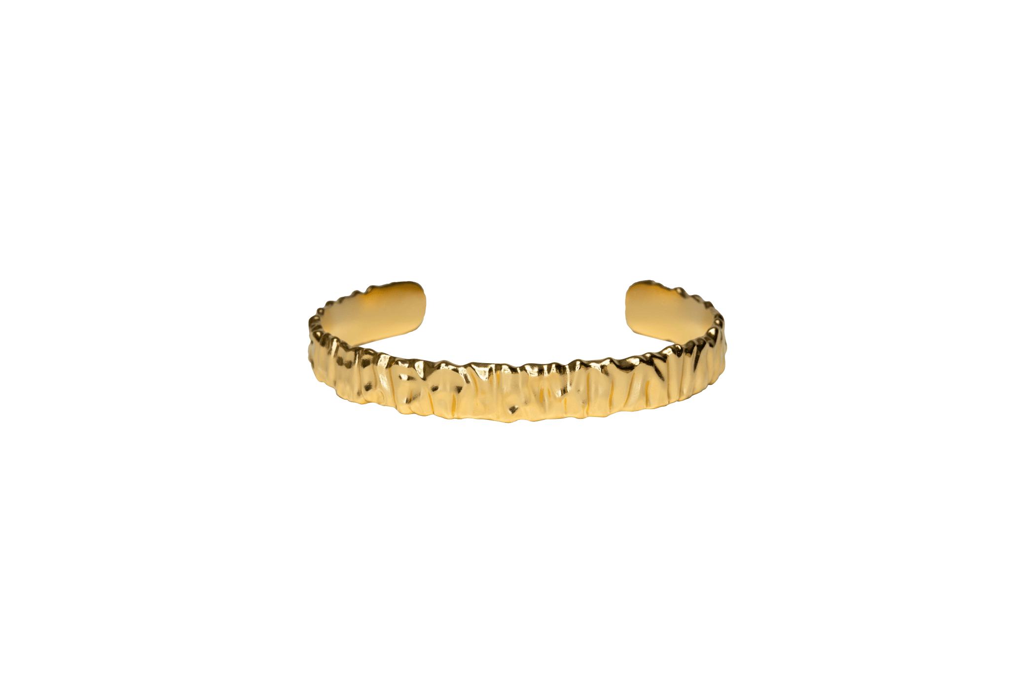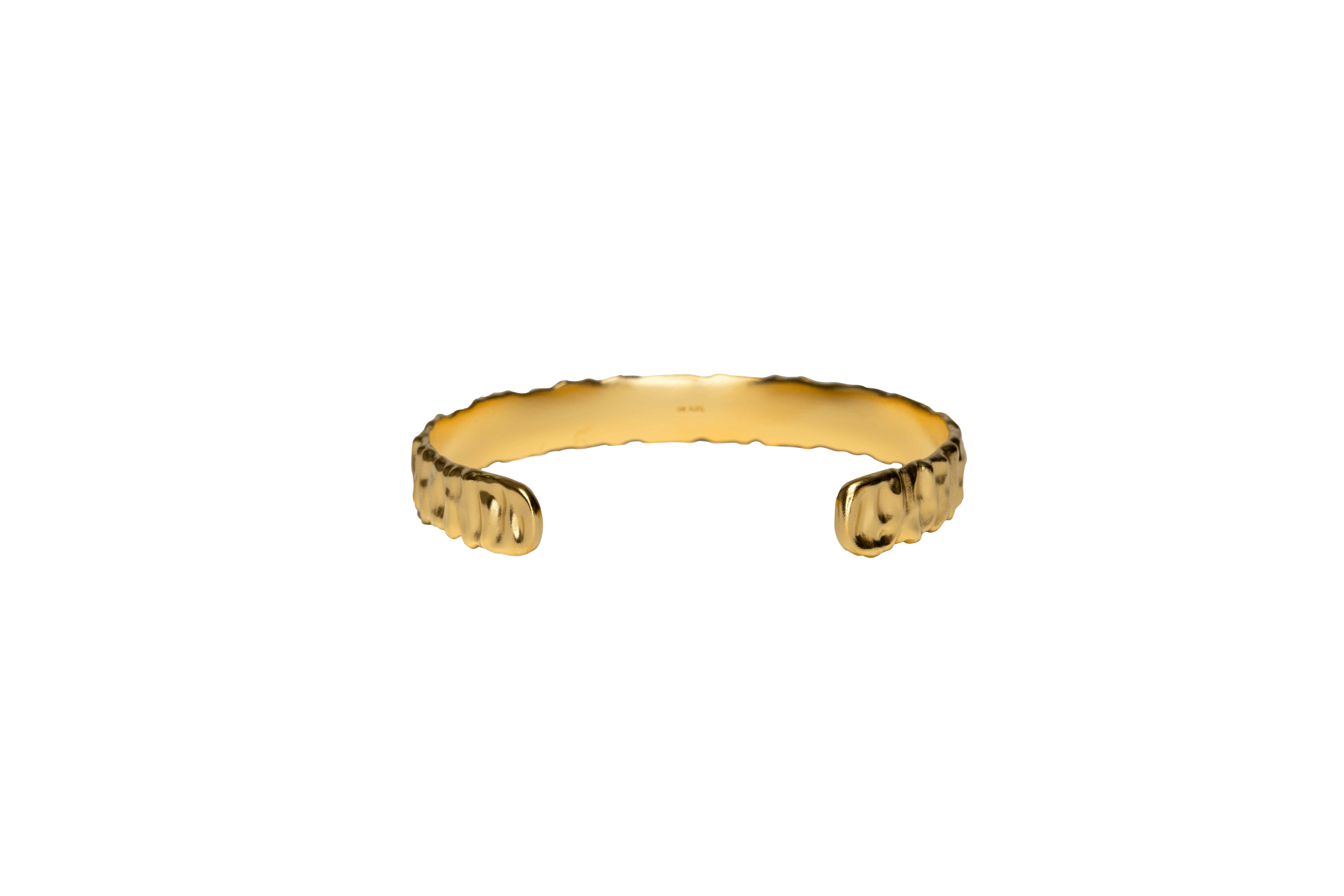 Raw and crunchy cuff bracelet.• The style measures 10 mm in the width. • This style is made from 100% recycled 22 karat gold-plated 925 sterling silver. • All our jewellery is stamped with 925 IX inside, which is our own hallmark registered with the Danish Assay Office.