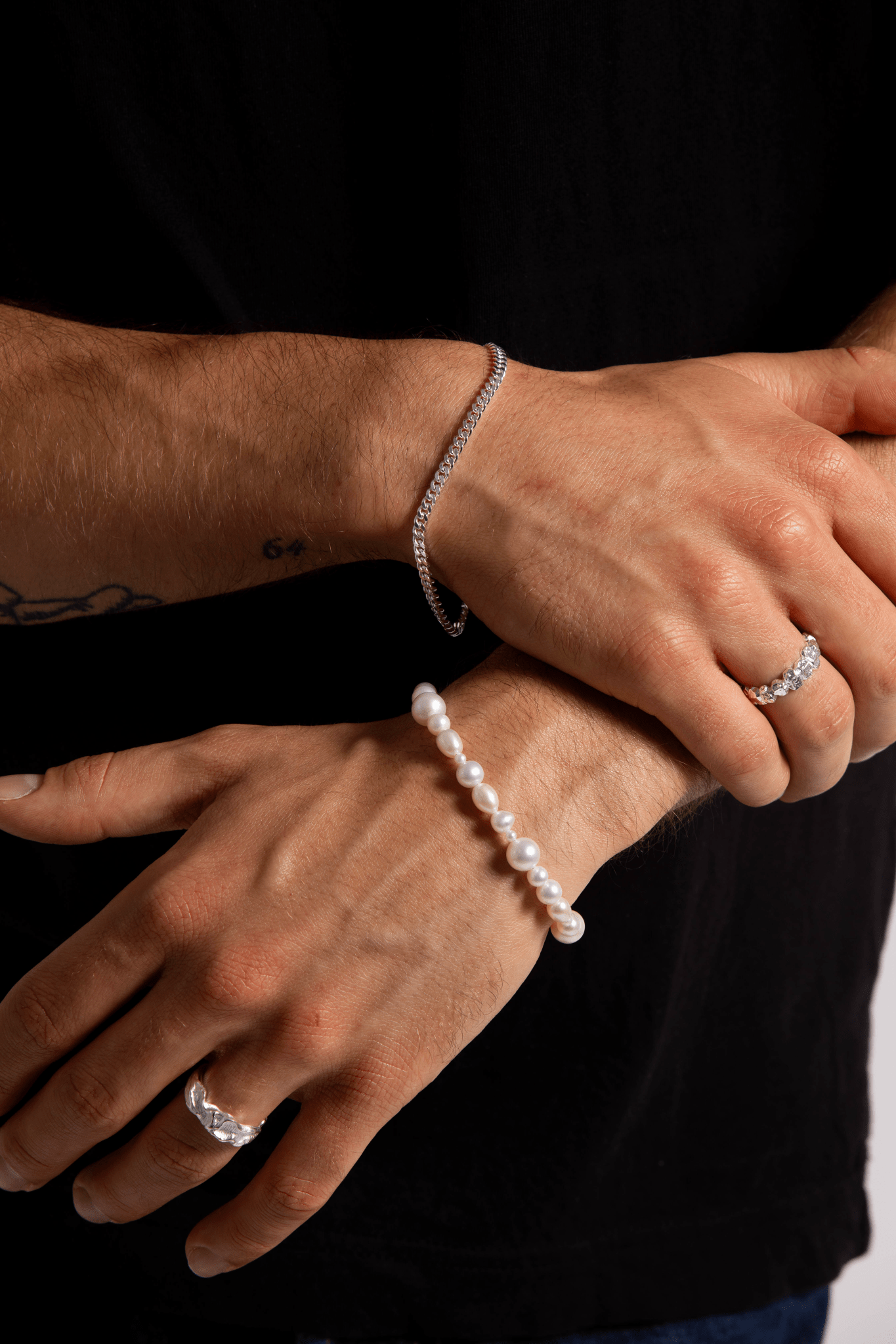 Bring nature into your daily life, with this raw and classic bracelet. • This style is made from 100% recycled 925 sterling silver and genuine freshwater pearls.