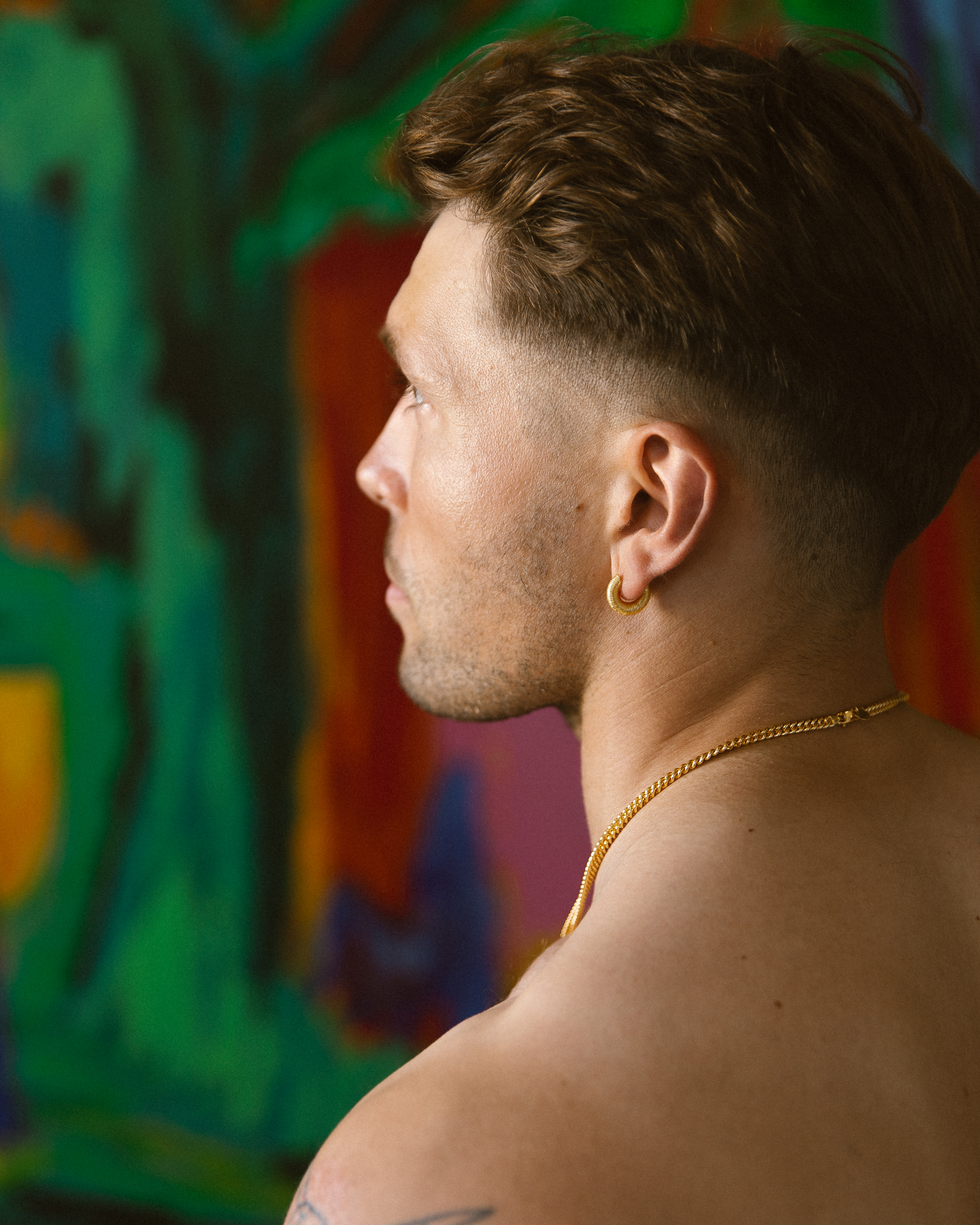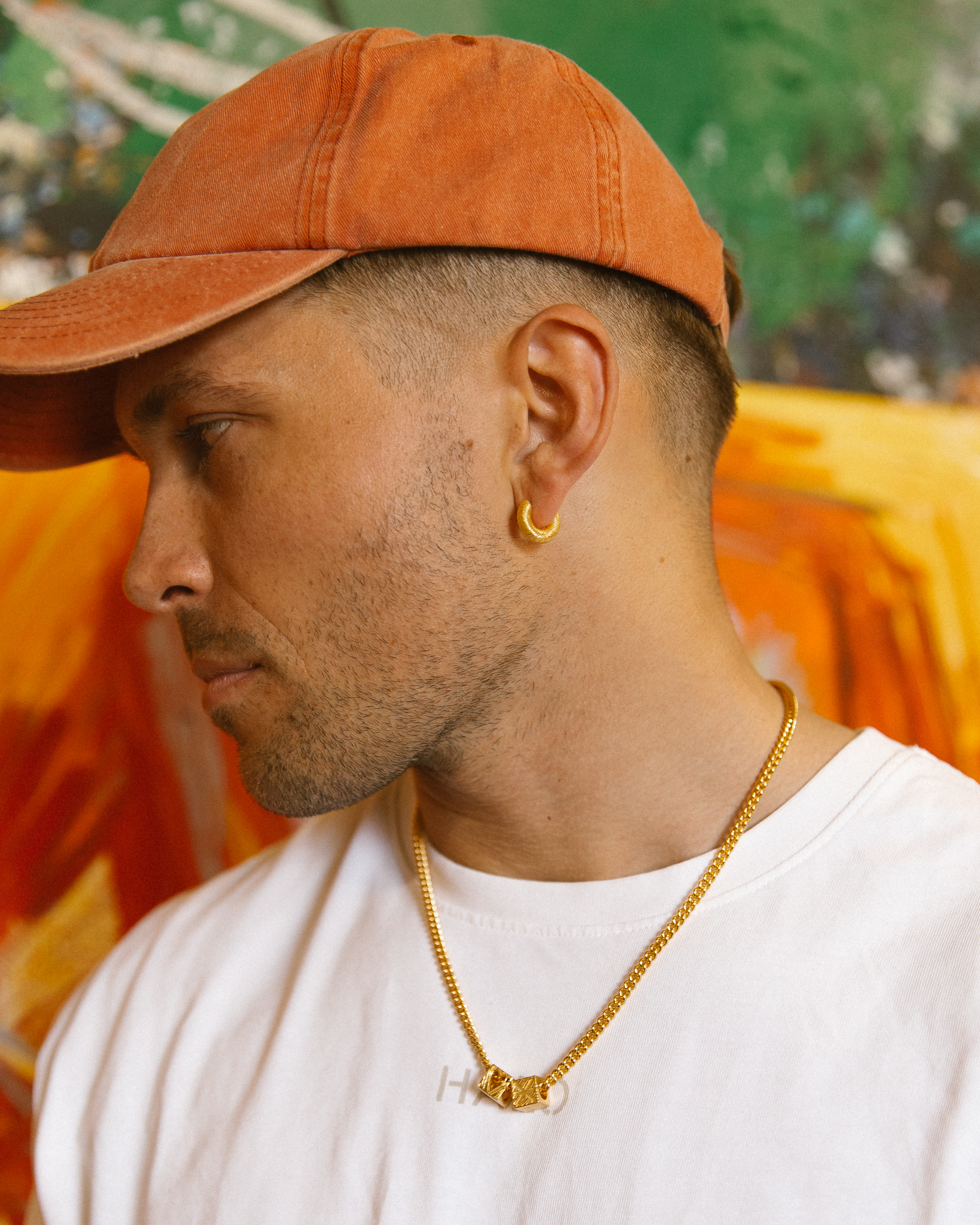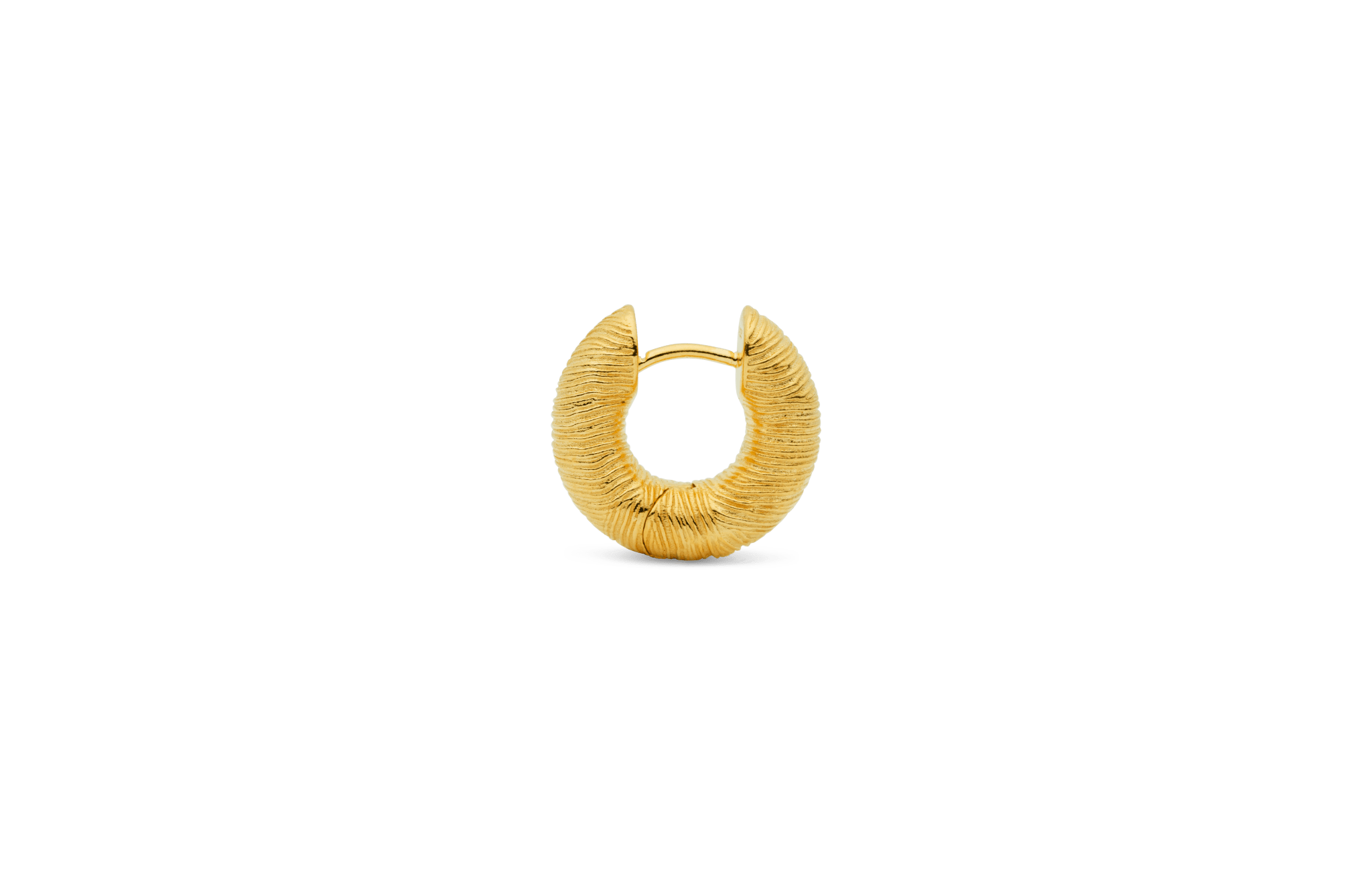 Textured surface earrings designed by artist Martin Brachér. The earrings are created to symbolise the beauty of nature and real moments.Limited Edition jewellery by artist Martin Brachér.The earrings are made from 100% recycled 22 Karat gold-plated 925 sterling silver.The earrings measure 7 mm in inner diameter and 17 mm in outer diameter.All our jewellery is stamped with 925 IX on the inside, which is our professional name stamp, registered by Danish Precious Metals Control.