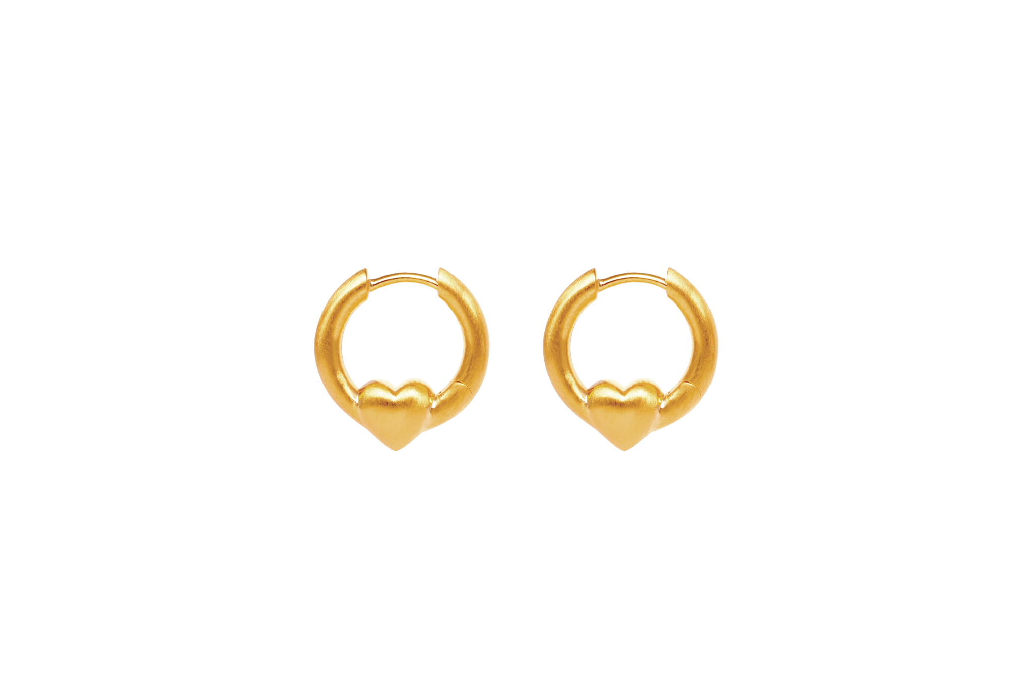 The heart earring. This earring is perfect for everyday use and special occasions. This earrings is two in one, you can style it with or witout the heart.• This style is made from recycled 22 karat gold plated 925 sterling silver.