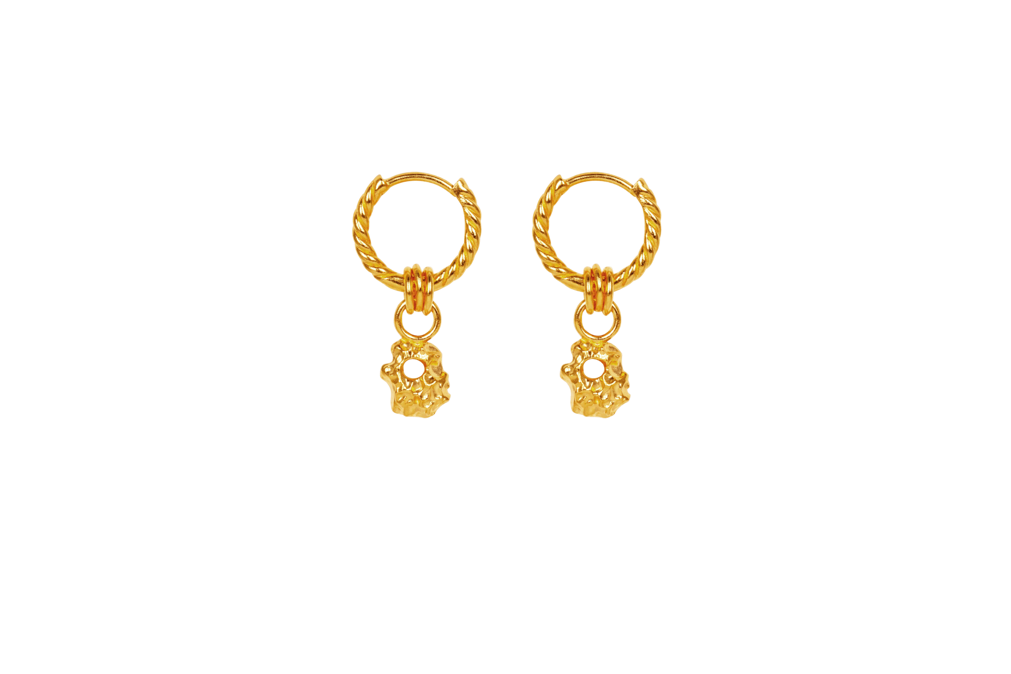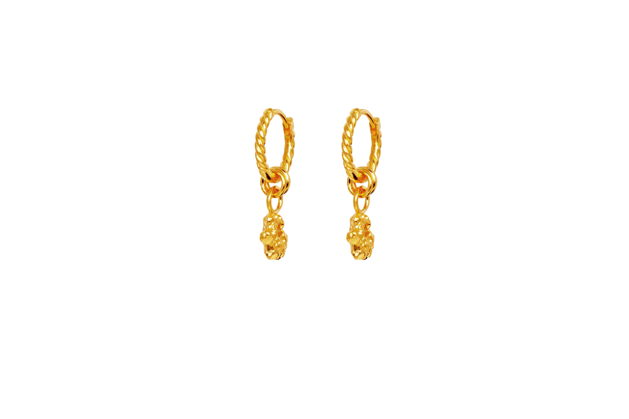 Precious and raw, with inspiration from the adder stones to give this style an organic look and feel.• This style measures 2,5 cm in length. • This style is made from 100% recycled 22 karat gold-plated 925 sterling silver. • All our jewellery is stamped with 925 IX on the inside, which is our professional hallmark registered with the Danish Assay Office.