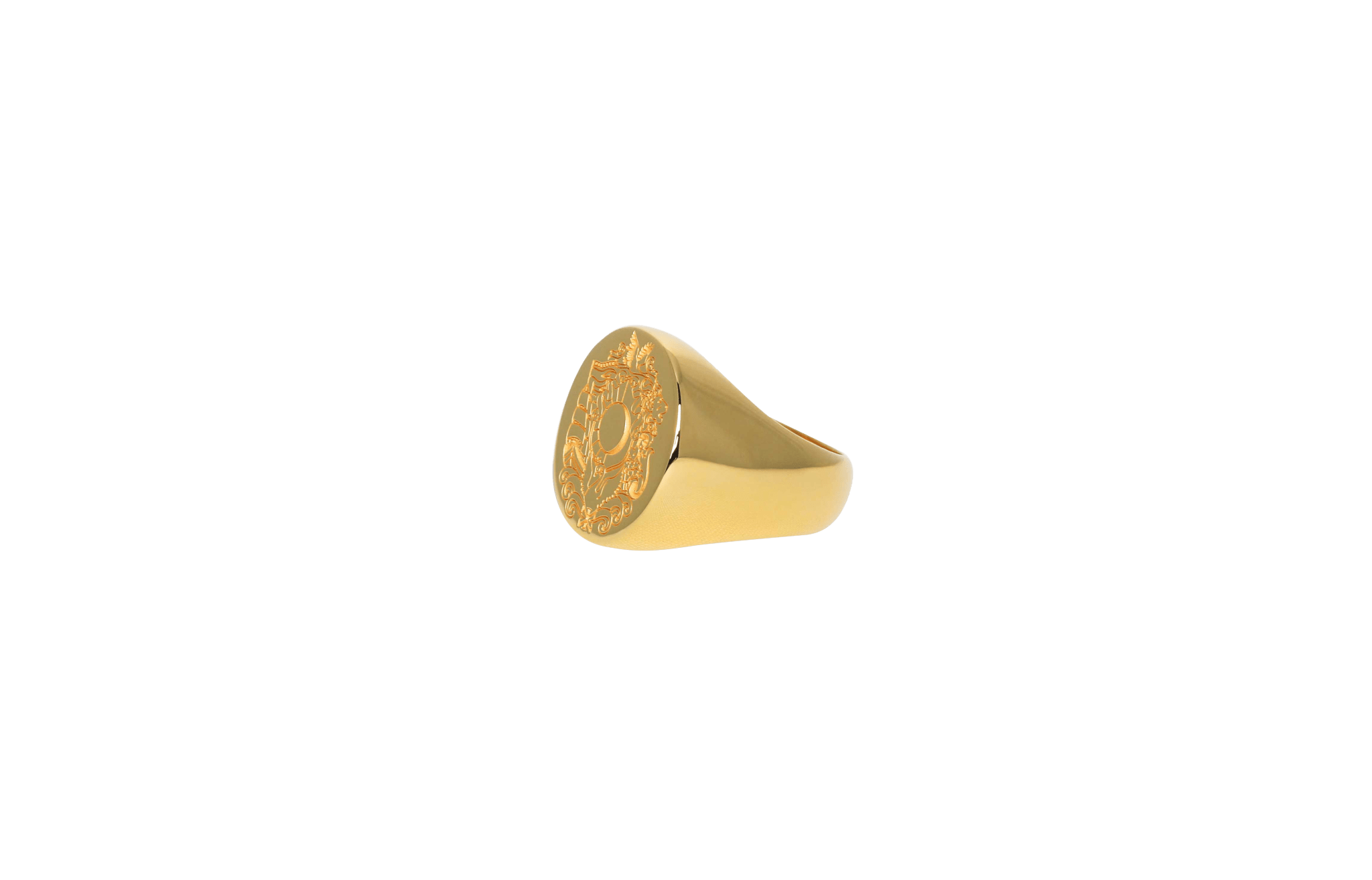 IX Oval Signet Ring with IX Family Crest engraving.• The ring top plate measures 15 x 16 mm.• This style is made in 100% recycled 22 karat gold-plated 925 serling silver.• All our jewellery is stamped with 925 IX inside, which is our own hallmark registered with the Danish Assay Office.Order items: • Estimated delivery is 3-4 weeks from order date.• All engraved products are non-returnable or refundable.• If any questions regarding product or process, please contact us on hello@ixstudioscph.com