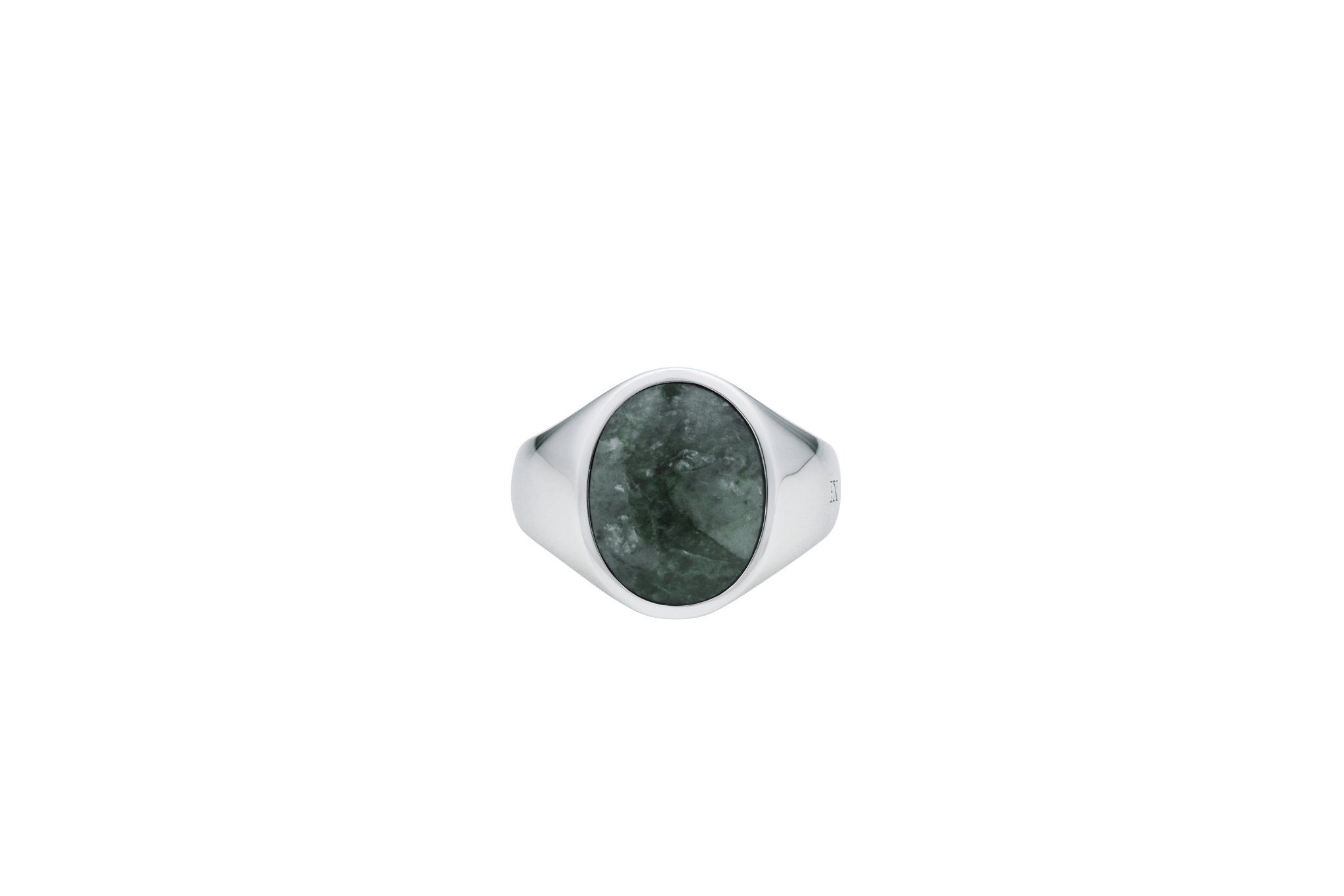 IX Oval Signet Ring Green Marble Silver
