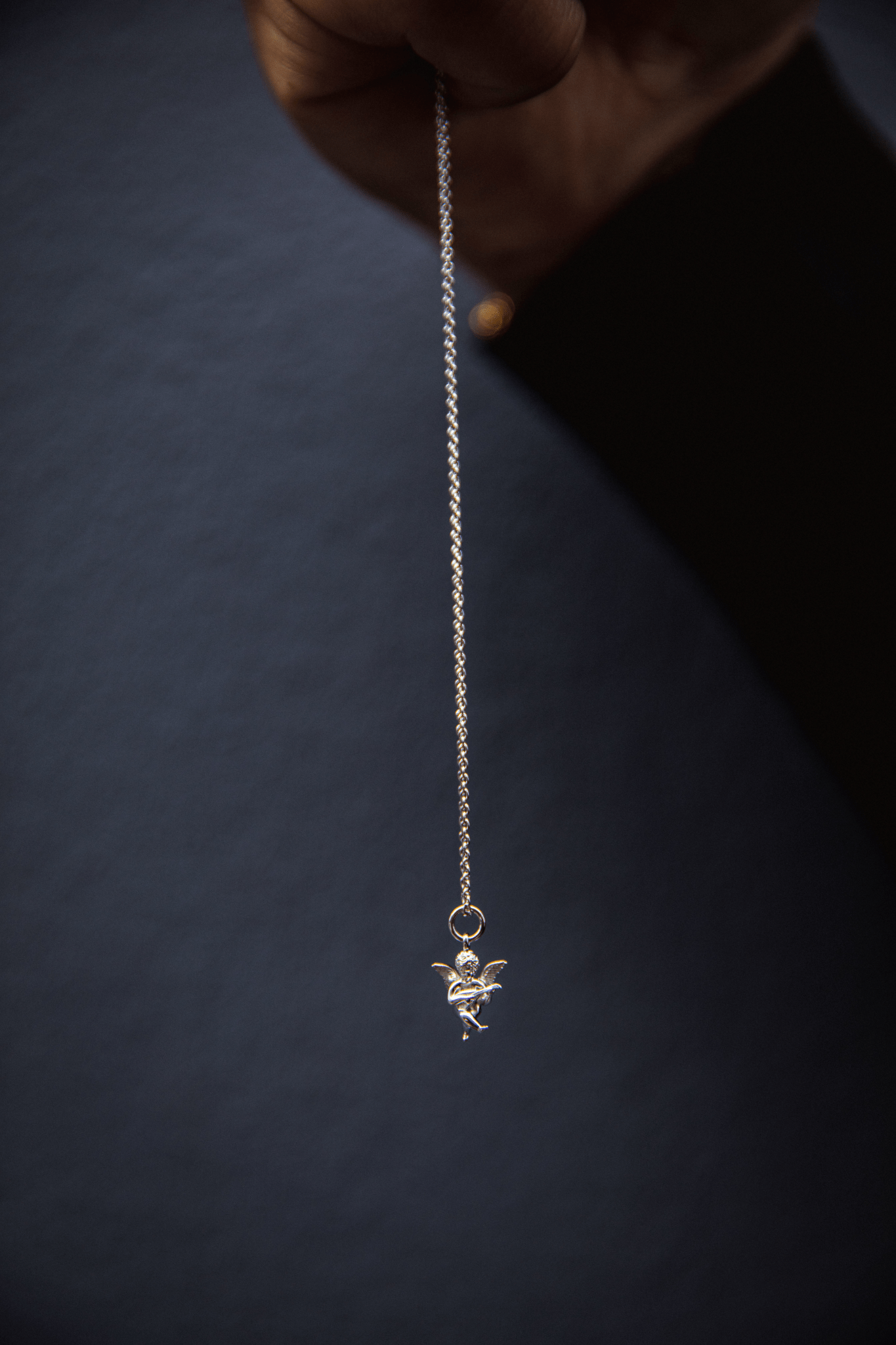 Detailed unisex pendant. The Angel charm can be worn in a necklace, bracelet or earring.• The IX Angel Charm measures 12 x 10 mm.• This style is made from 100% recycled 925 sterling silver. • All our jewellery is stamped with 925 IX on the inside, which is our professional hallmark registered with the Danish Assay Office.The man is wearing the chain in a 55 cm.The woman is wearing the chain in a 45 cm.