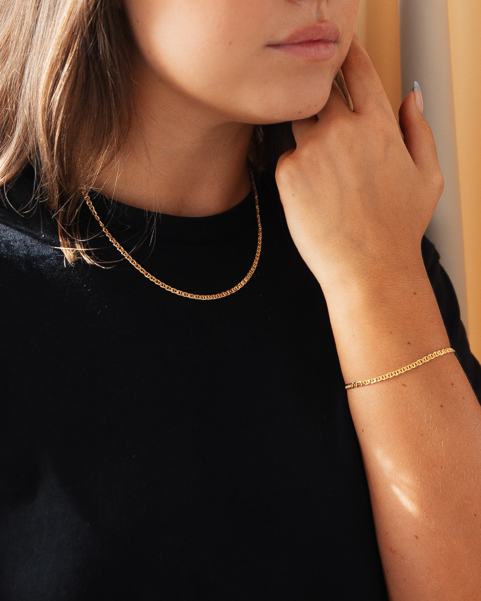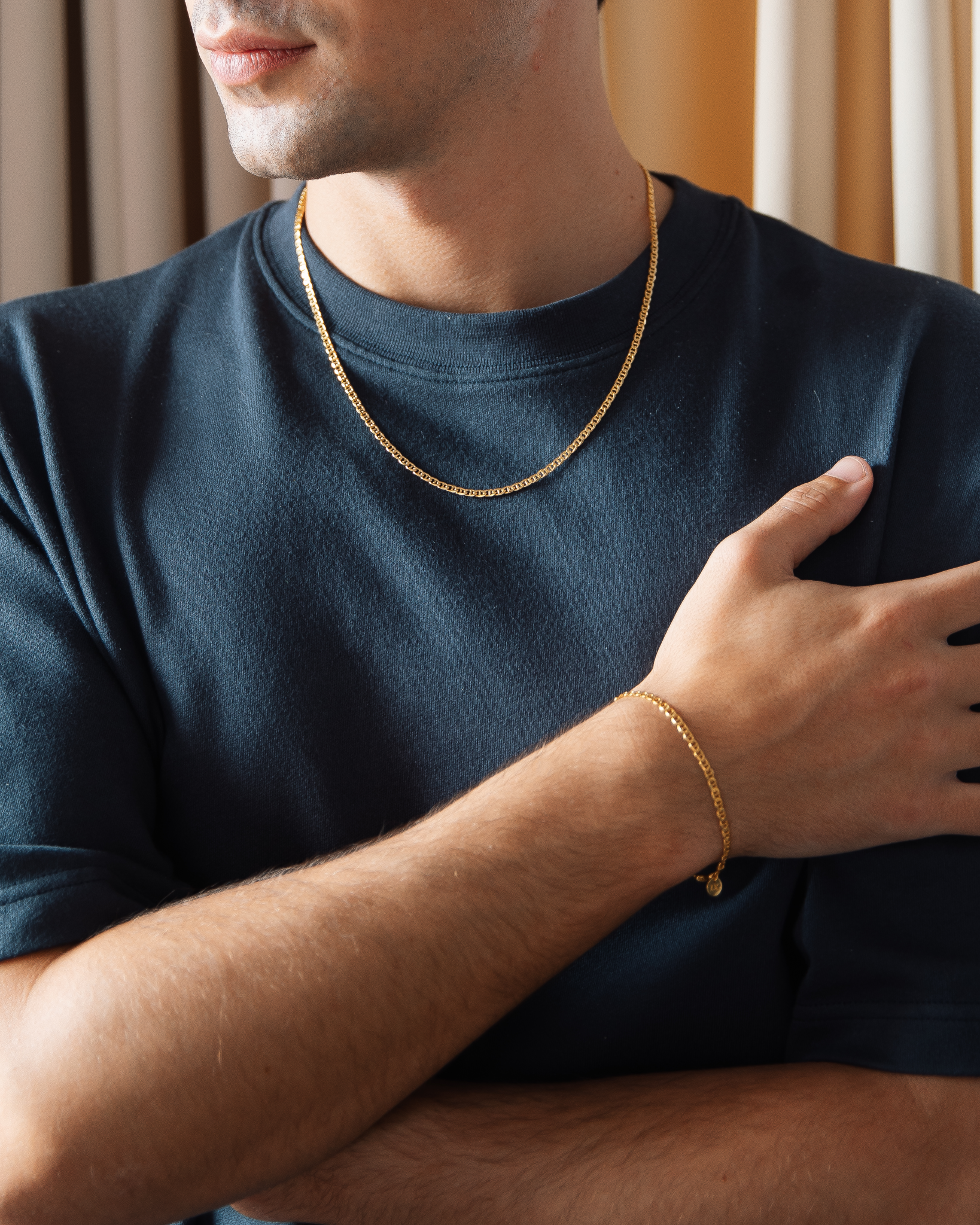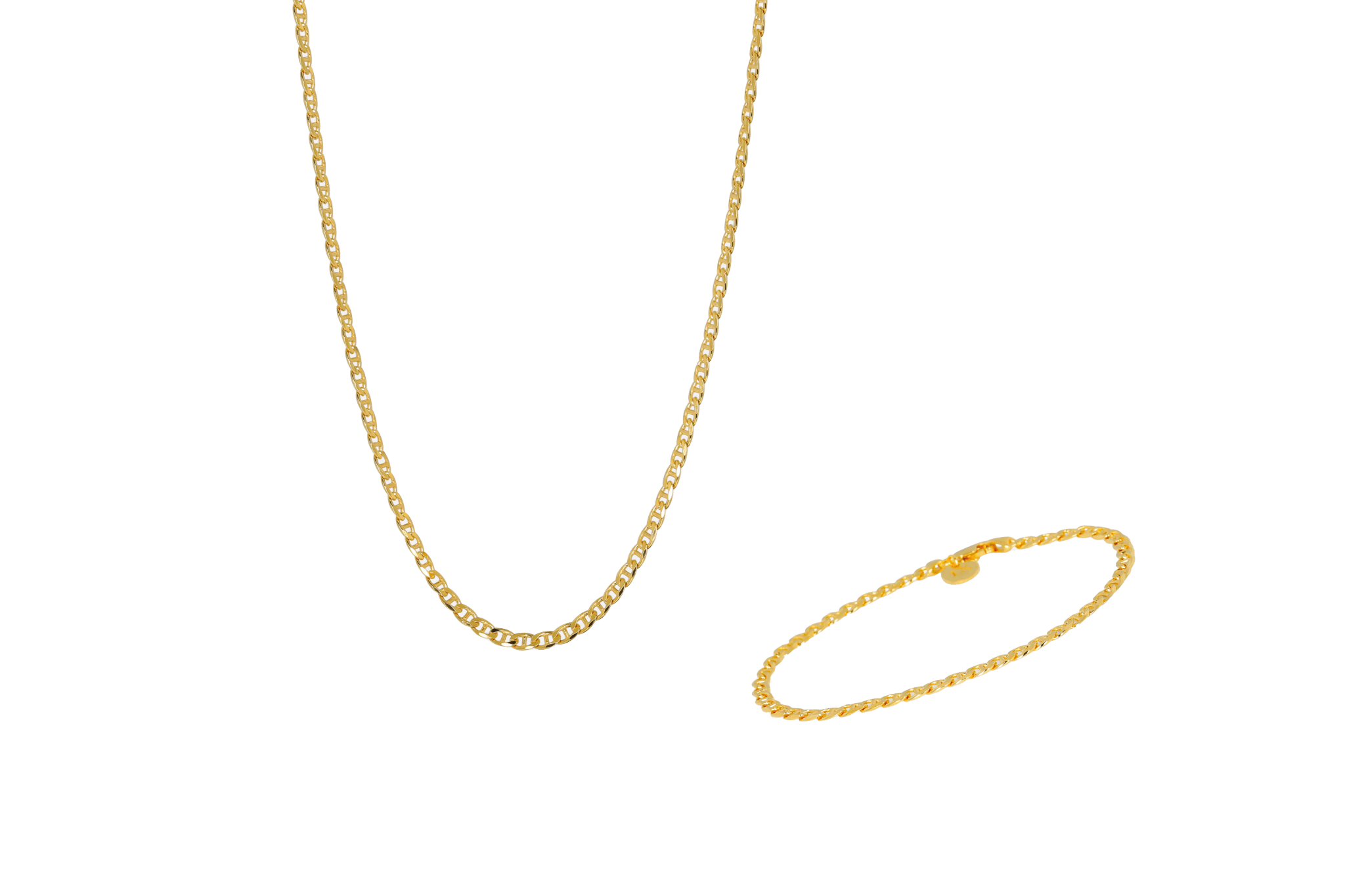 Jewellery set consisting of IX Curb Marina Chain and IX Curb Marina Bracelet.When purchasing the set, you save 15% on the necklace and bracelet.Small: IX Curb Marina Chain (45 cm) and IX Curb Marina Bracelet (17 cm).Medium: IX Curb Marina Chain (55 cm) and IX Curb Marina Bracelet (19 cm).Large: IX Curb Marina Chain (55 cm) and IX Curb Marina Bracelet (21 cm).