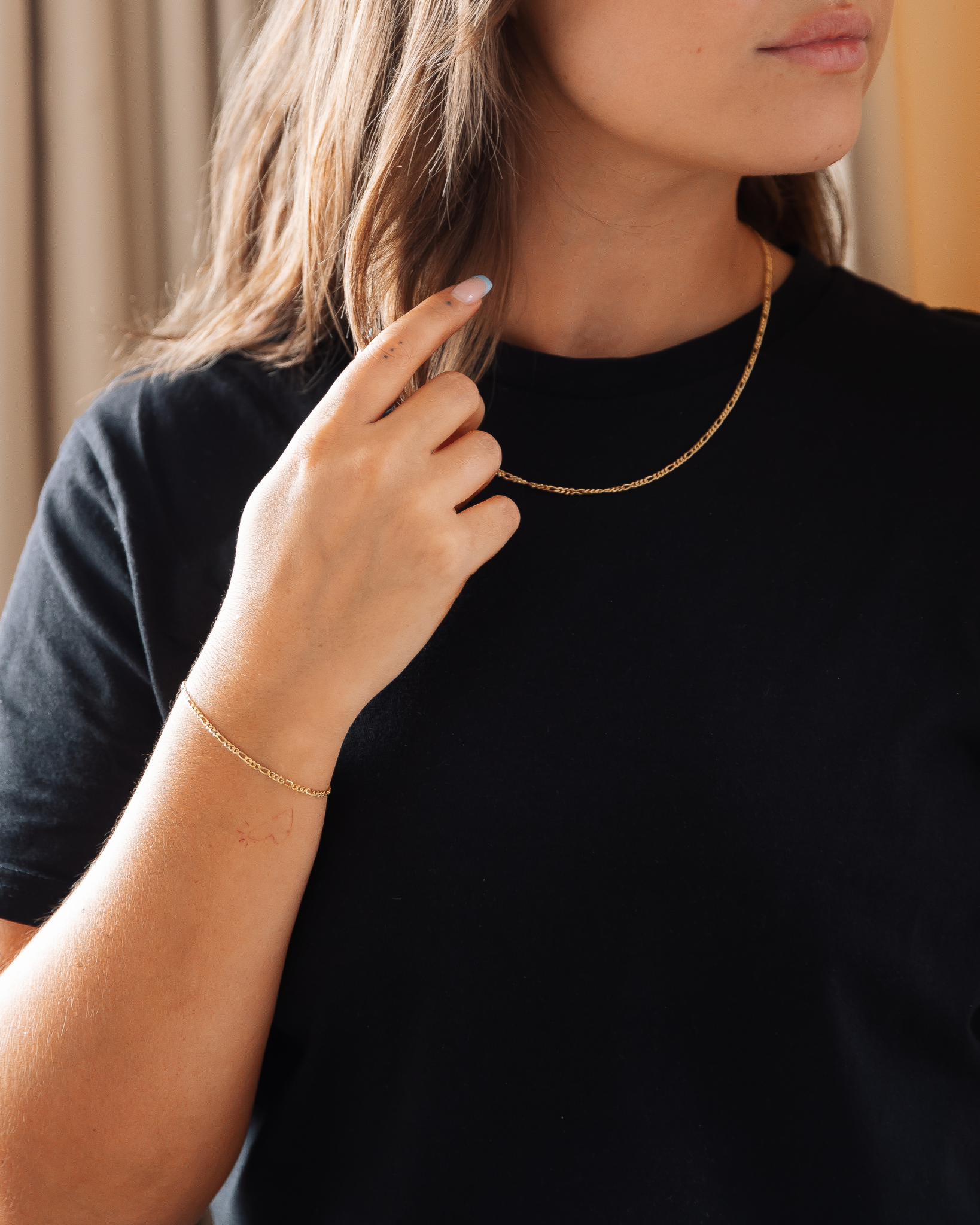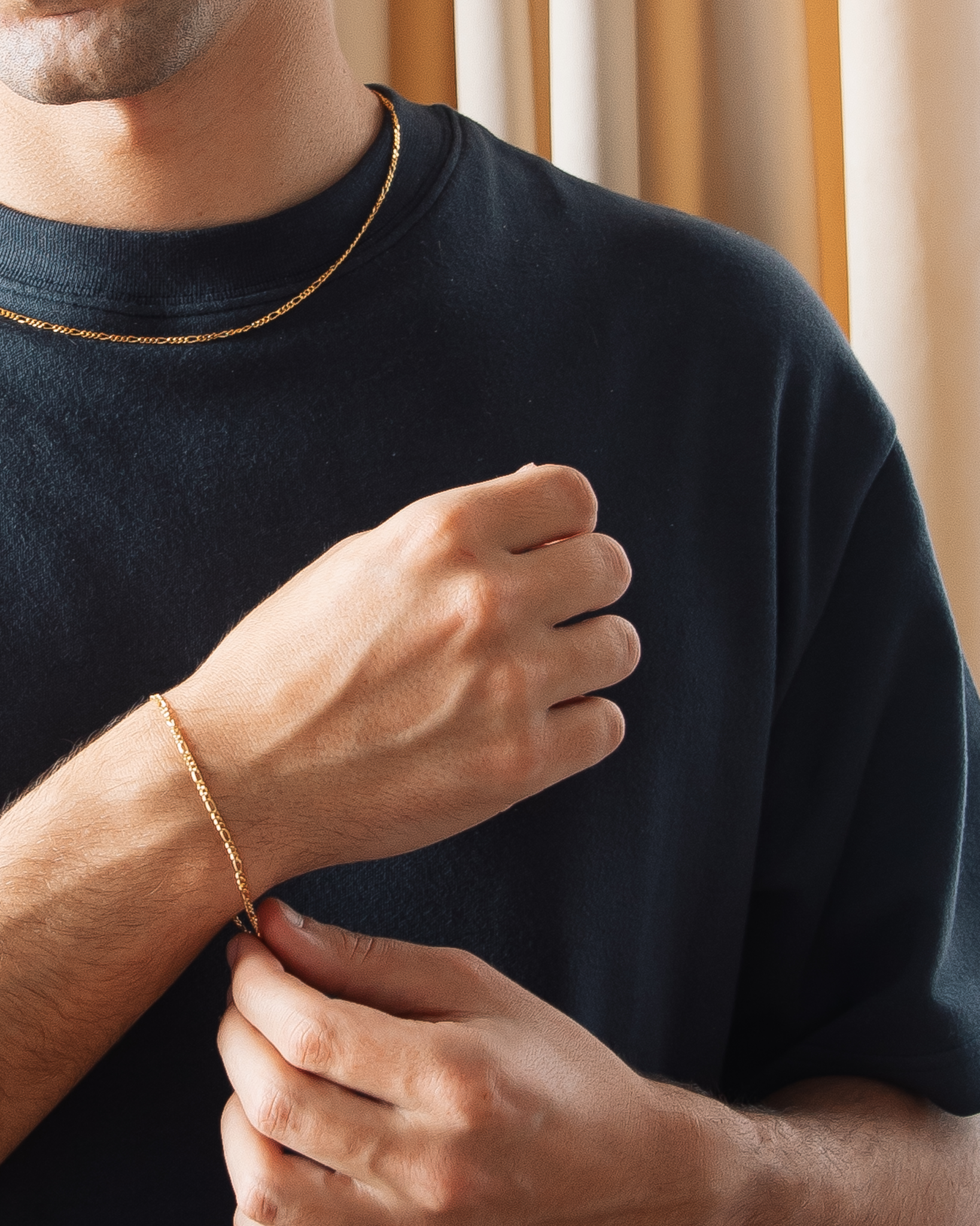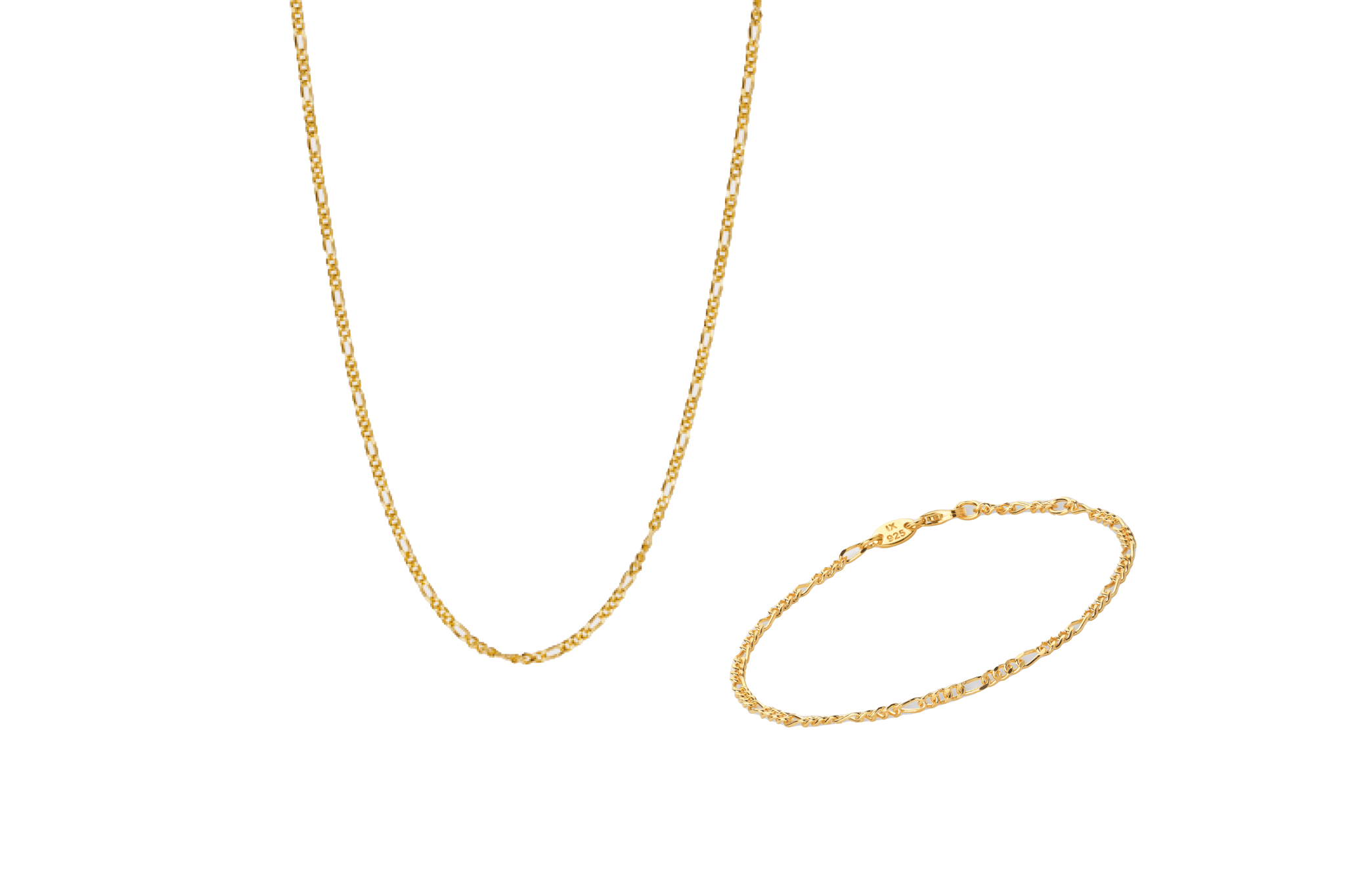 Jewellery set consisting of IX Figaro Chain and IX Figaro Bracelet.When purchasing the set, you save 15% on the necklace and bracelet. Small: IX Figaro Chain (45-50 cm) and IX Figaro Bracelet (16.5-18 cm). Medium: IX Figaro Chain (55-60 cm) and IX Figaro Bracelet (18.5-20 cm).