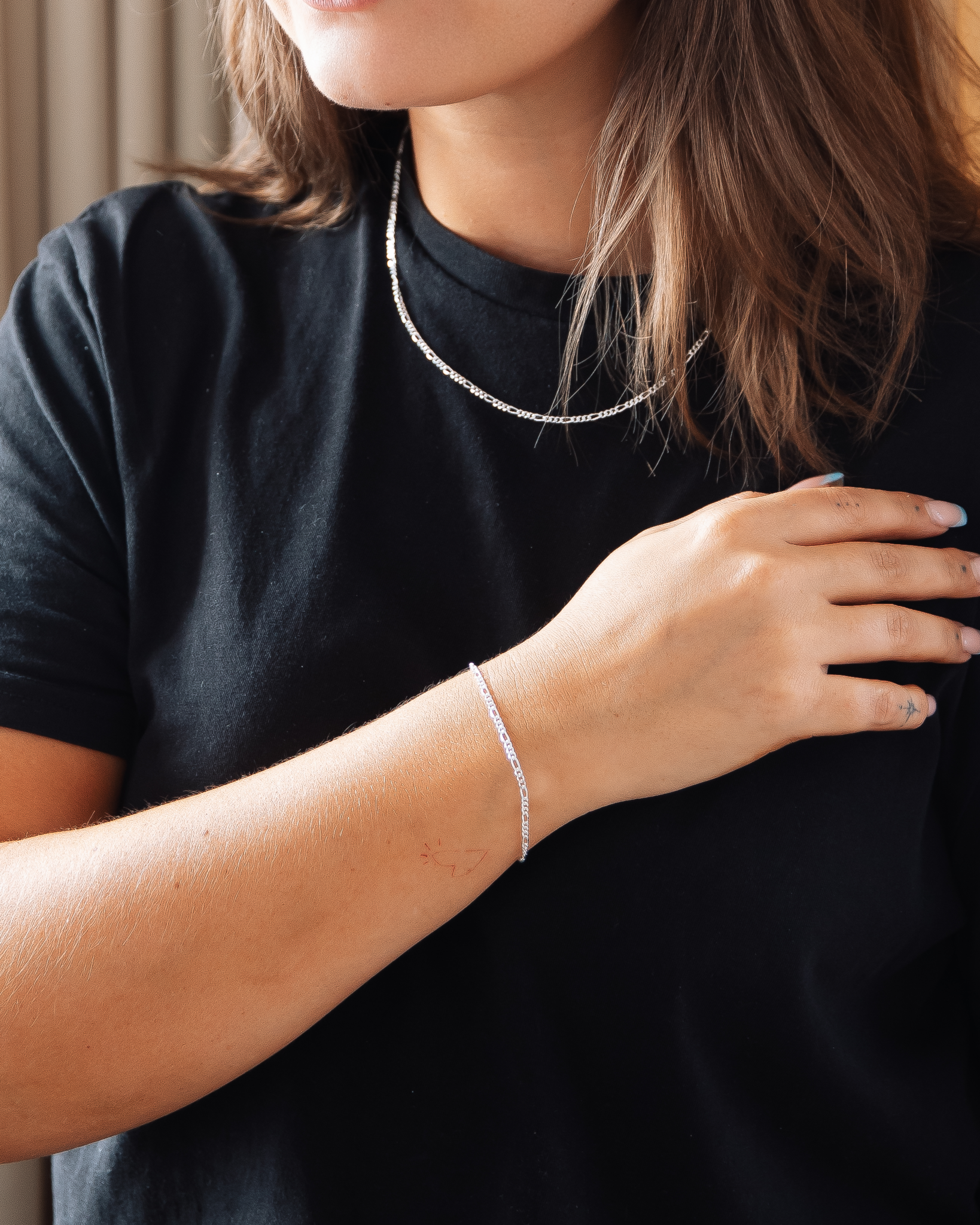 Jewellery set consisting of IX Figaro Chain Silver and IX Figaro Bracelet Silver.When purchasing the set, you save 15% on the necklace and bracelet. Small: IX Figaro Chain Silver (45-50 cm) and IX Figaro Bracelet Silver (16.5-18 cm). Medium: IX Figaro Chain Silver (55-60 cm) and IX Figaro Bracelet Silver (18.5-20 cm).