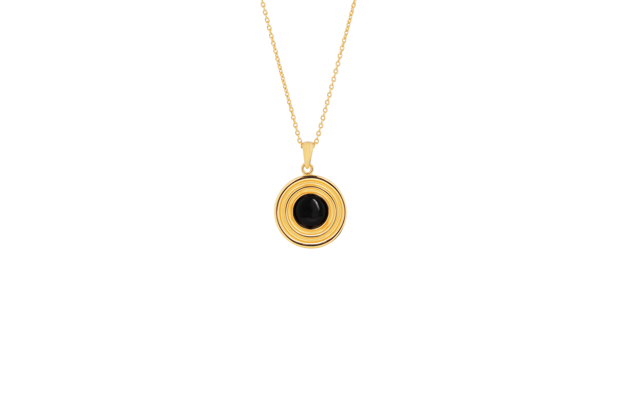 Unique pendant shaped as an amulet with a natural onyx stone. • The pendant measures 18 mm in diameter.