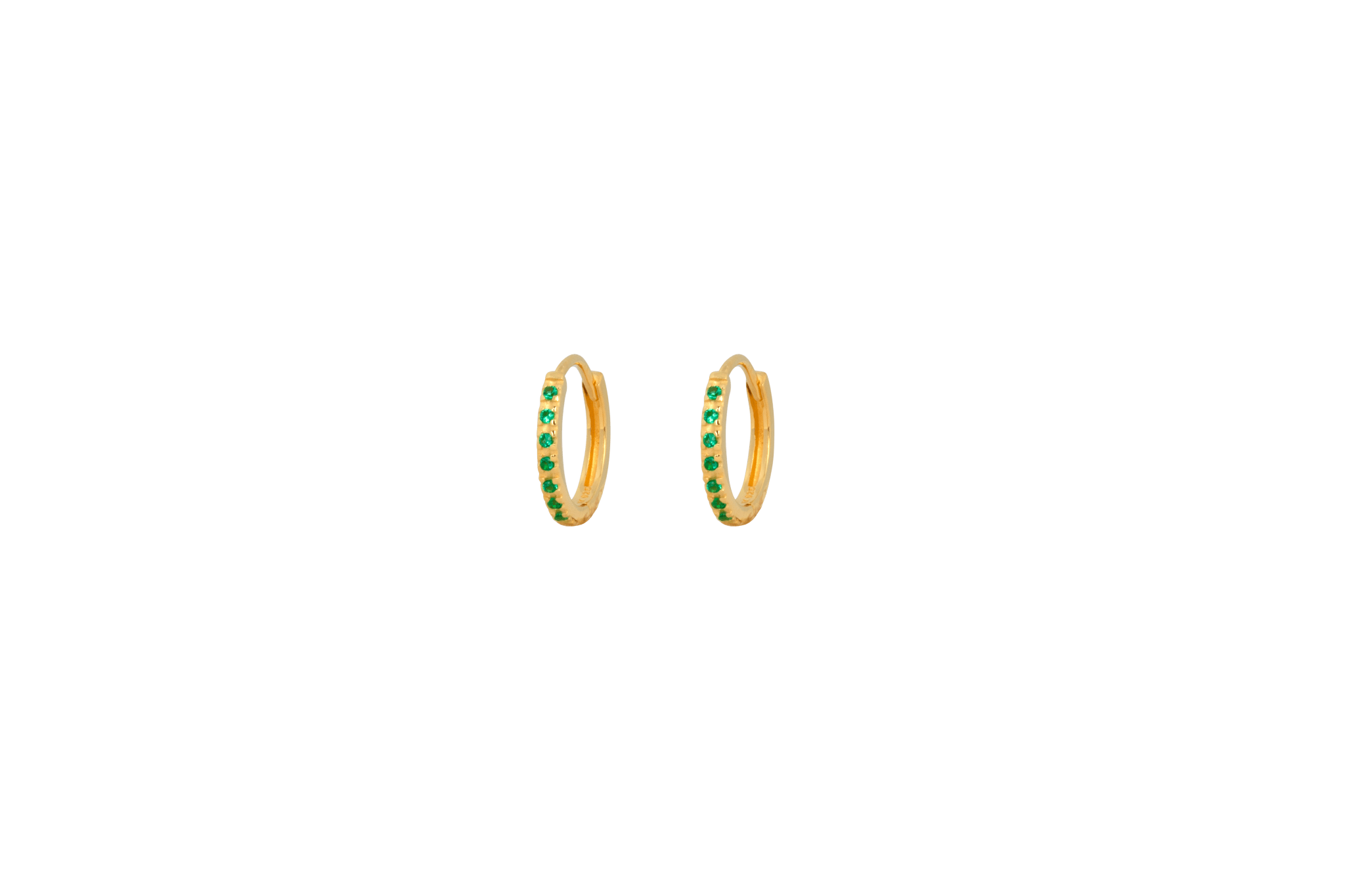 IX Billy hoops with green zirconia stones. A simple style with a twist.
