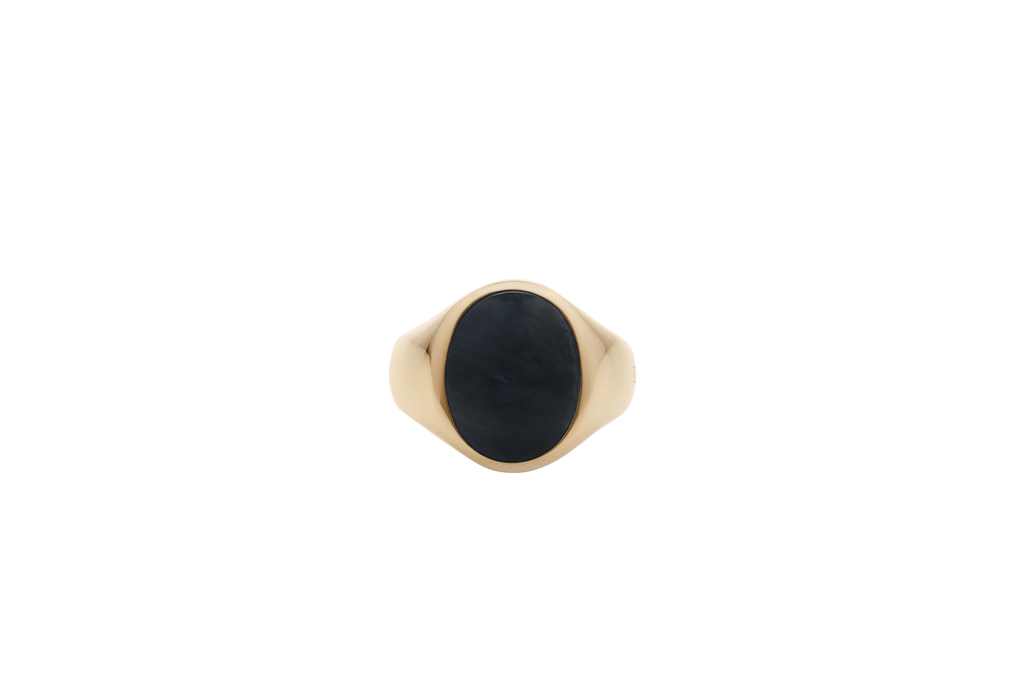 Unisex oval signet ring with soft edges and Hawks Eye stone. • This style is made from 100% recycled 22 karat gold-plated 925 sterling silver. • All our jewellery is stamped with 925 IX inside, which is our own hallmark registered with the Danish Assay Office.• This stone stands for protection, strength and endurance. The stone will help reduce stress, give inner calm, and loosen the anxiety.