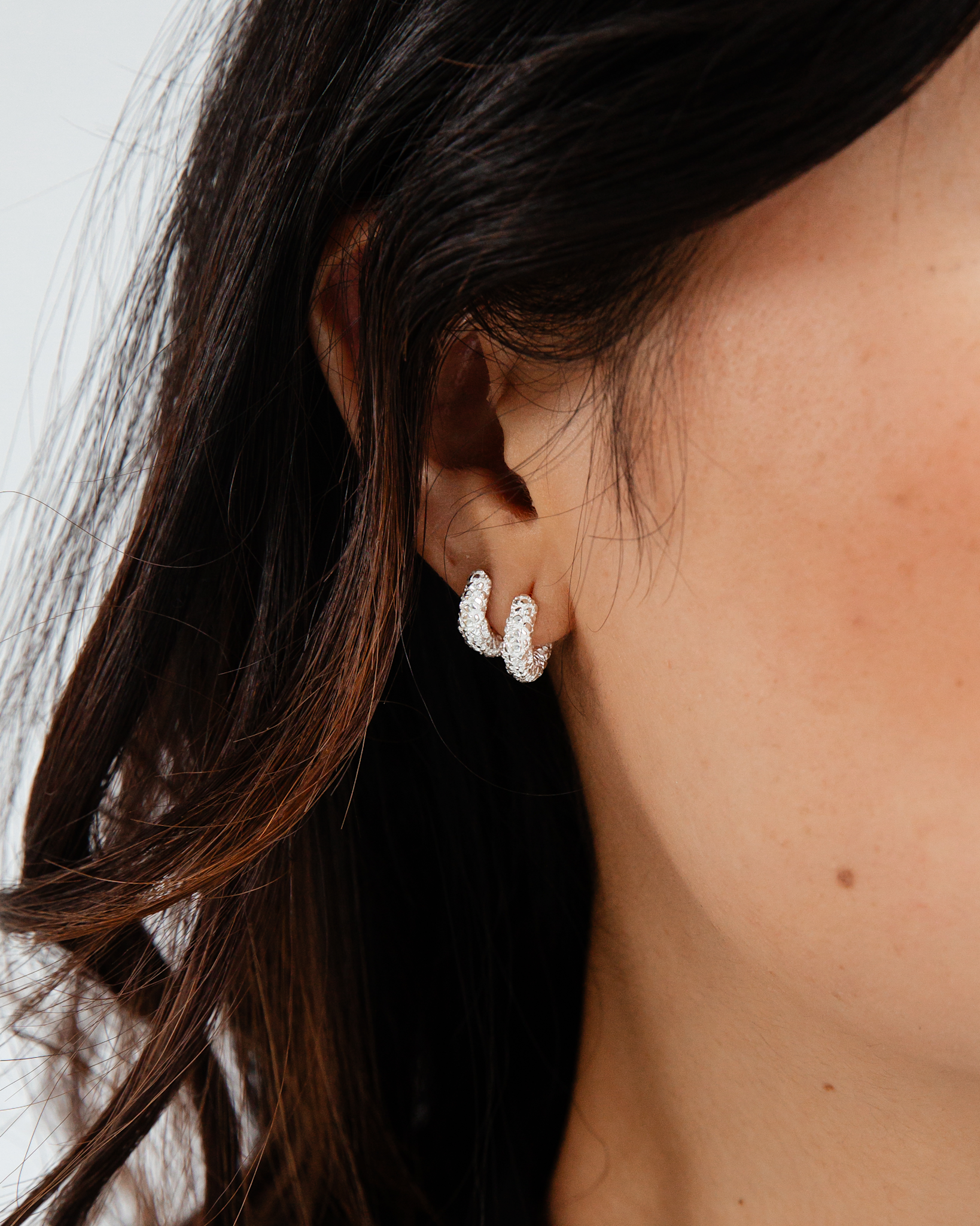 The Zoe earring transforms timeless hoop earrings into something unique with our new crunchy surface. These earrings combine classic elegance with a modern touch. Add the Zoe Earring to your jewellery collection for a stylish and eye-catching look.