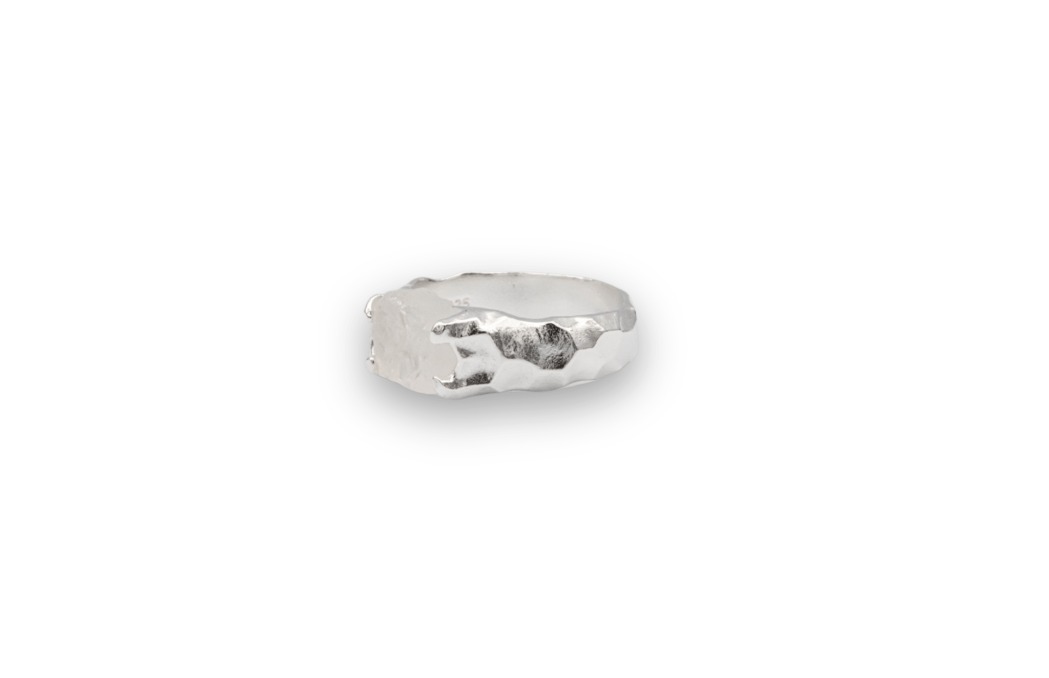 The Avy Ring is a unique statement ring featuring a nature-inspired surface and a stunning mountain crystal. As the smaller version of the Lolo Ring, the Avy Ring boasts an edgy look that adds raw elegance to your outfit. Bring a touch of nature's beauty to your jewelry collection with the Avy Ring.Our rings are unisex, making them perfect for both men and women. This ring is available in both silver and gold plated.