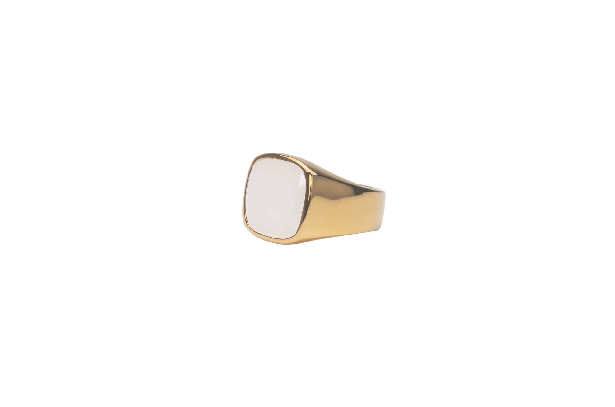 Unisex signet ring with soft edges and a Moonstone.• The style's top plate measures 14 x 14 mm.• This style is made from 100% recycled 22 karat gold-plated 925 sterling silver. • All our jewellery is stamped with 925 IX inside, which is our own hallmark registered with the Danish Assay Office.• Moon Stone is a stone for “new beginning”. Moonstone is a stone of inner power and strength. It improves your intuition, increases inspiration and success. It can also give you luck in both love and business connections.