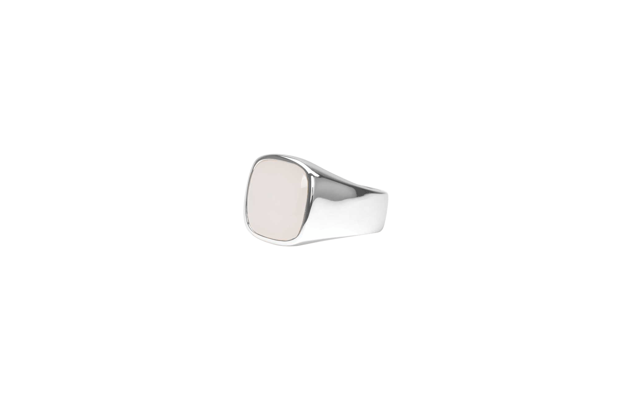 Unisex signet ring with soft edges and a Moonstone.• The style's top plate measures 14 x 14 mm.• This style is made from 100% recycled 925 sterling silver. • All our jewellery is stamped with 925 IX inside, which is our own hallmark registered with the Danish Assay Office.• Moon Stone is a stone for “new beginning”. Moonstone is a stone of inner power and strength. It improves your intuition, increases inspiration and success. It can also give you luck in both love and business connections.