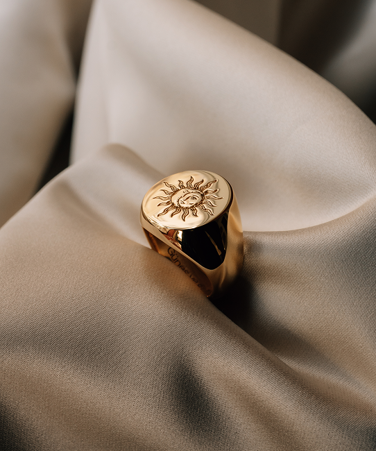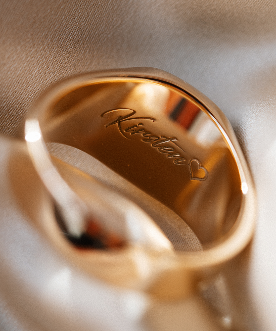 Classic mini oval signet ring with soft edges.• The top-plate of the ring measures 11 x 8 mm.• Suitable for engraving.• All engraved products are non-returnable or refundable.• This style is made from 100% recycled 22 karat gold-plated 925 sterling silver. • All our jewellery is stamped with 925 IX inside, which is our own hallmark registered with the Danish Assay Office.