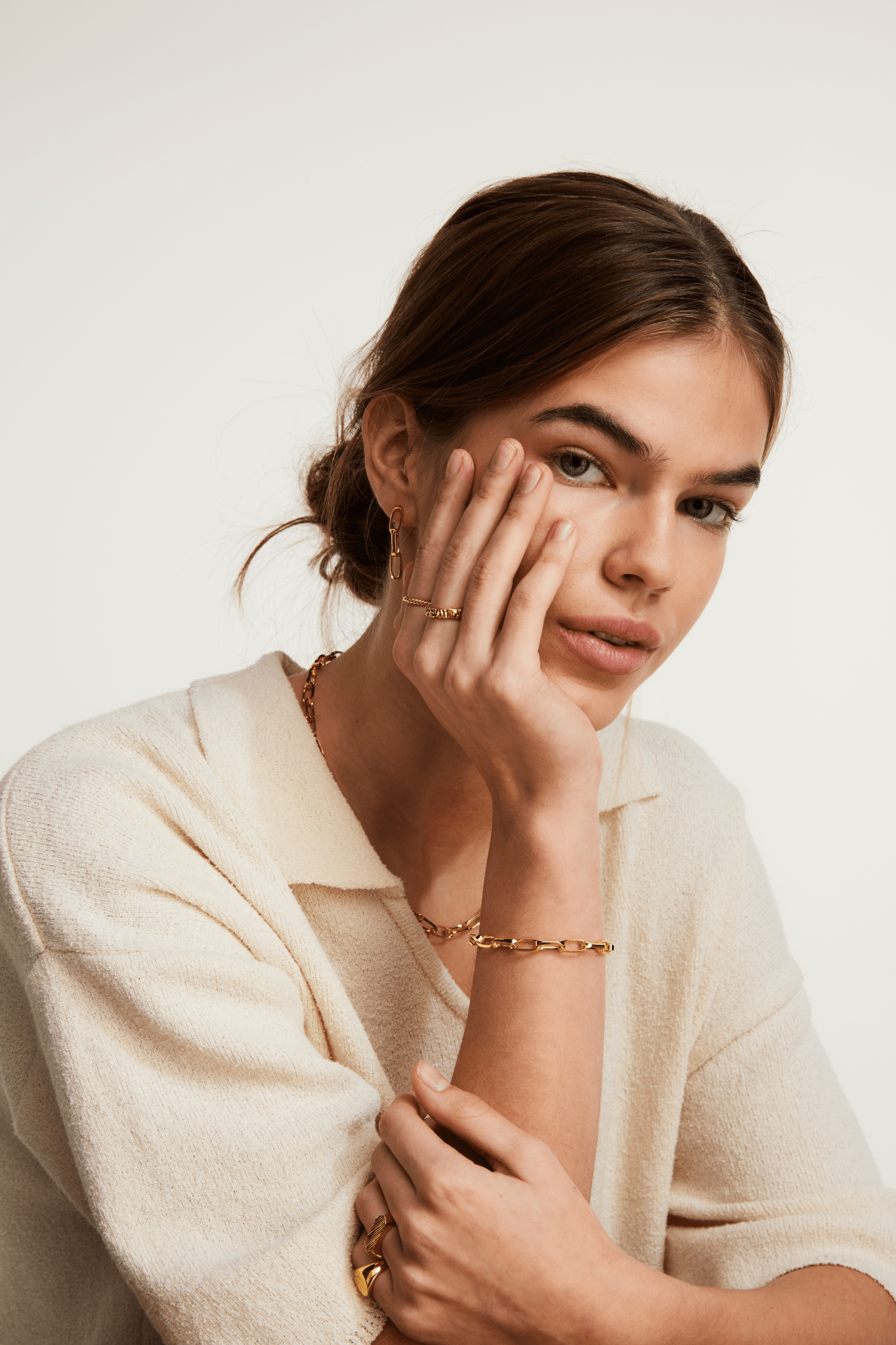 A raw touch and a lot of play. • The style measures 5 mm in height.• This style is made from 100% recycled 22 karat gold-plated 925 sterling silver. • All our jewellery is stamped with 925 IX inside, which is our own hallmark registered with the Danish Assay Office.