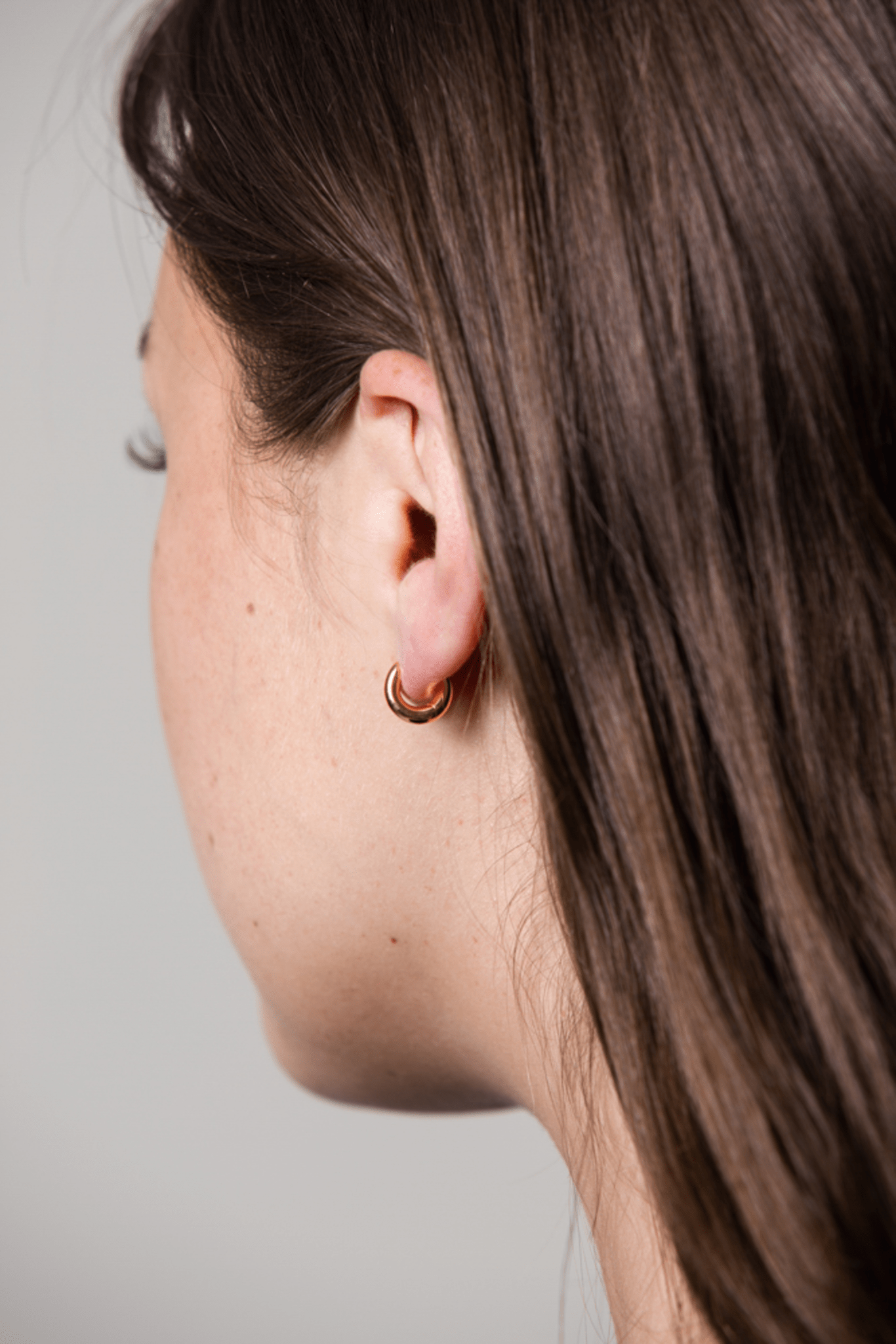 Raw, chunky and edgy earrings!• This style is made from 100% recycled 22 karat gold-plated 925 sterling silver. • The earring measures 12 mm in inner diameter.• All our jewellery is stamped with 925 IX inside, which is our own hallmark registered with the Danish Assay Office.