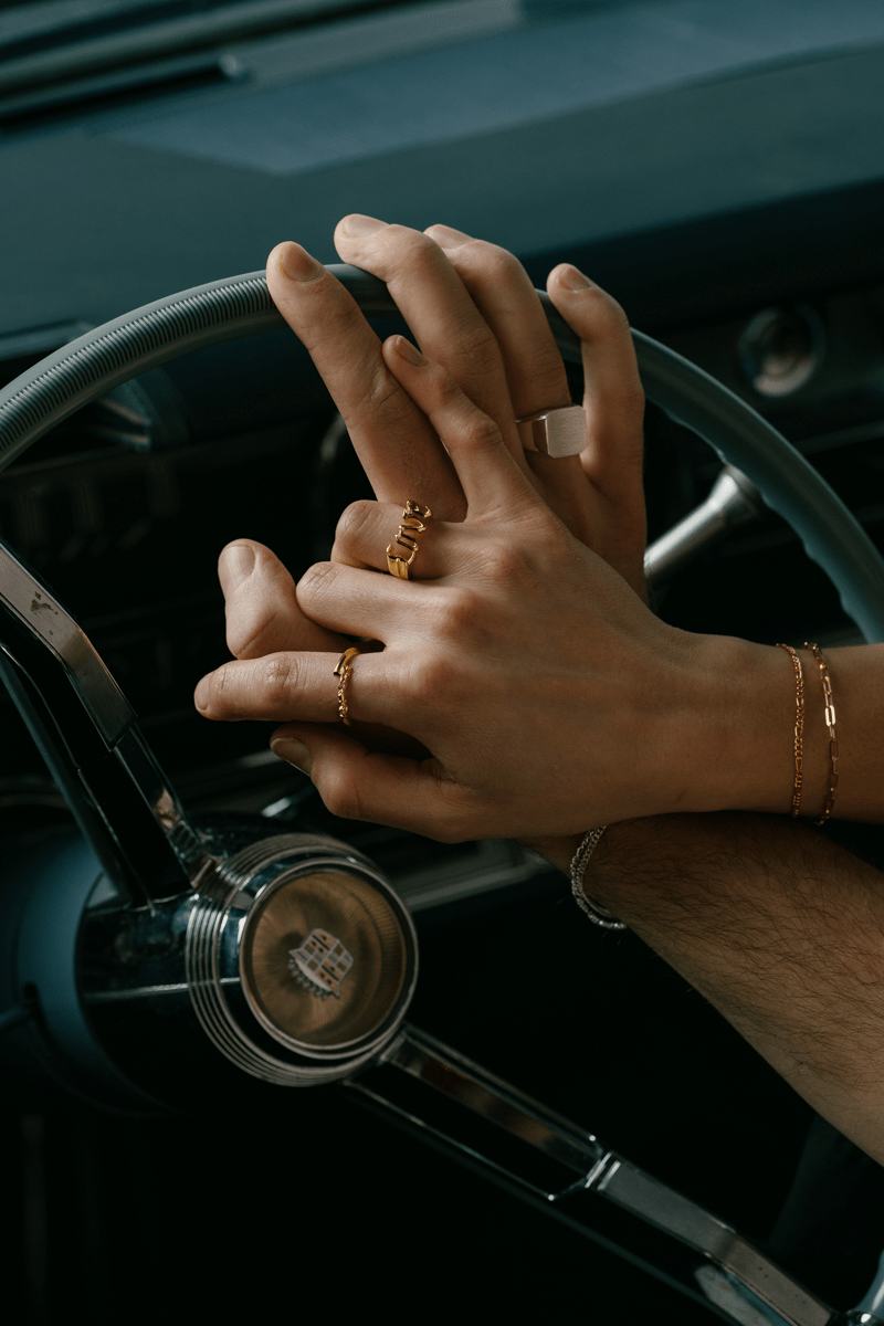 Inspired by the nature - mountains, rocks, and the texture of sand. • This style is made from 100% recycled 22-karat gold-plated 925 sterling silver. • All our jewellery is stamped with 925 IX inside, which is our own hallmark registered with the Danish Assay Office.