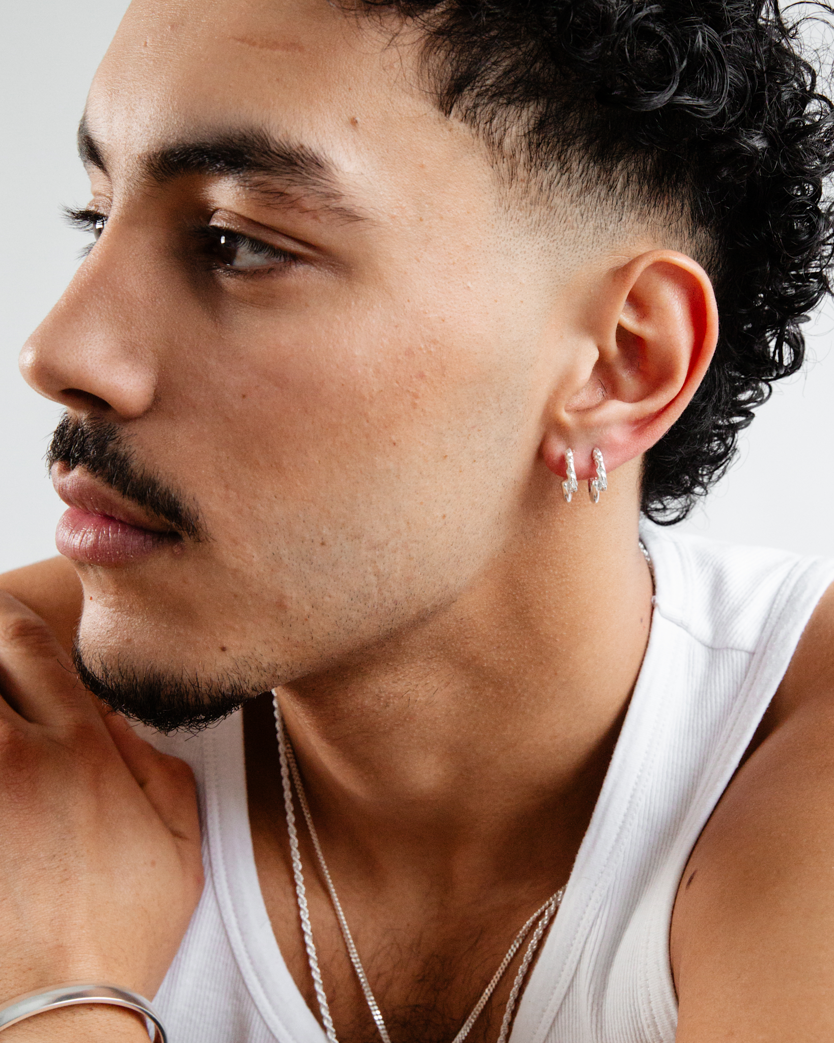 The Rustic earring is unisex, designed to suit both men and women, and is available in both gold plated and silver.