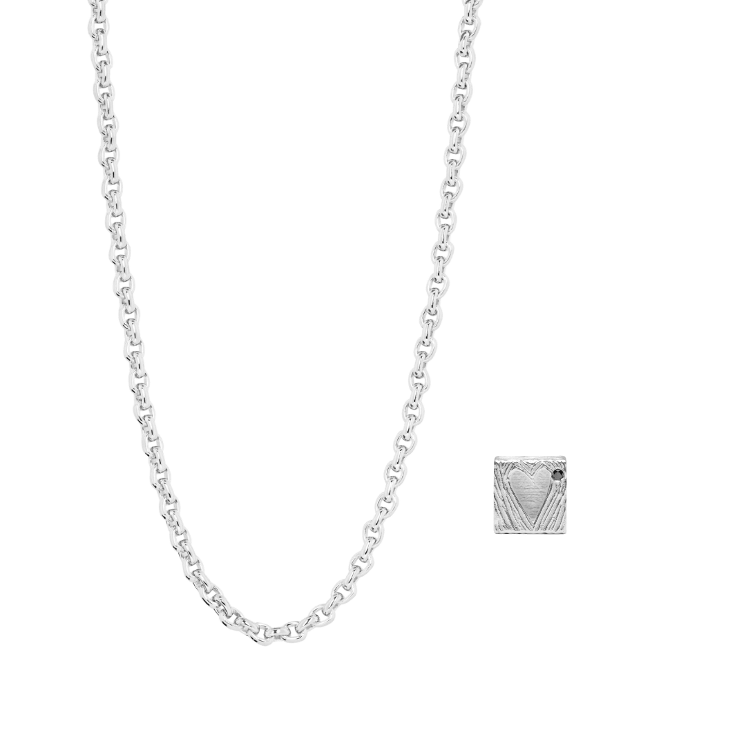 Jewellery set consisting of IX Rene Chain silver and IX Heart in a Box Charm silver.When purchasing the set, you save 20% on the necklace and charm.