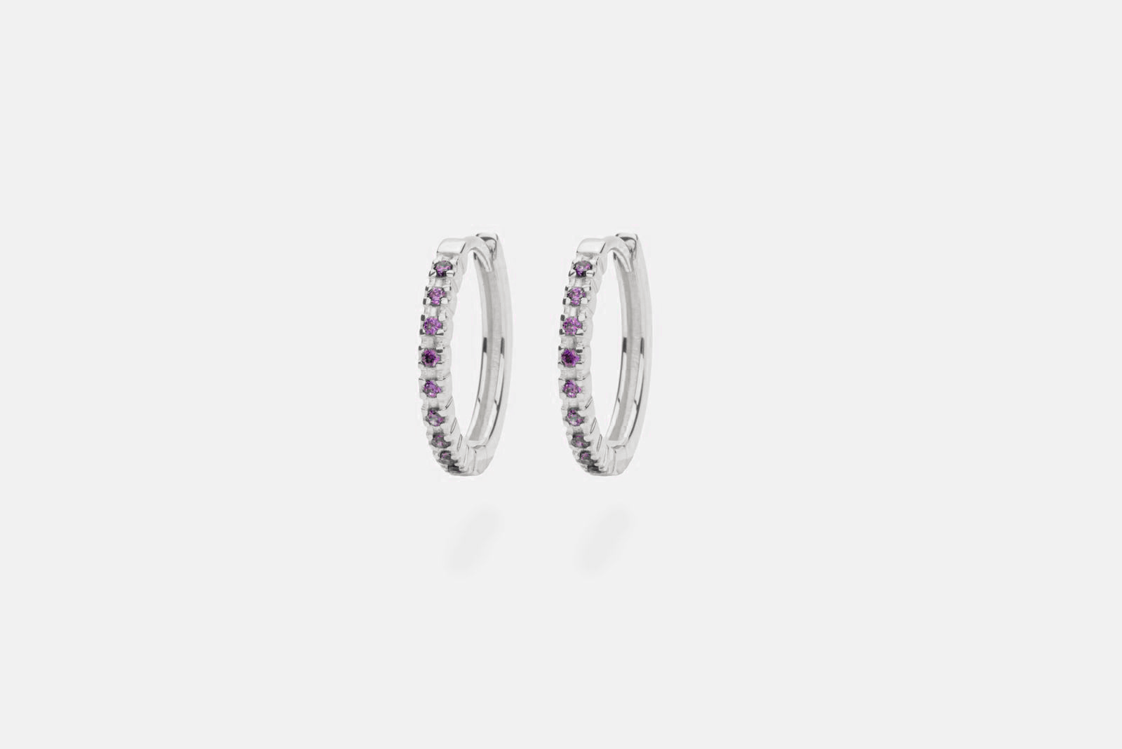 Small elegant hoops with purple stones. Combine or match with other earrings or wear them alone for a classic and simple look.