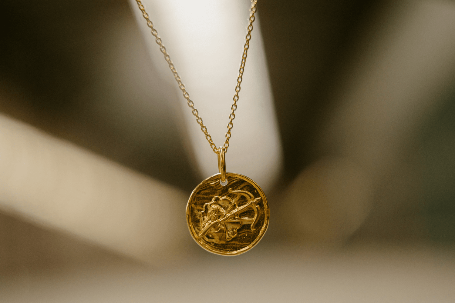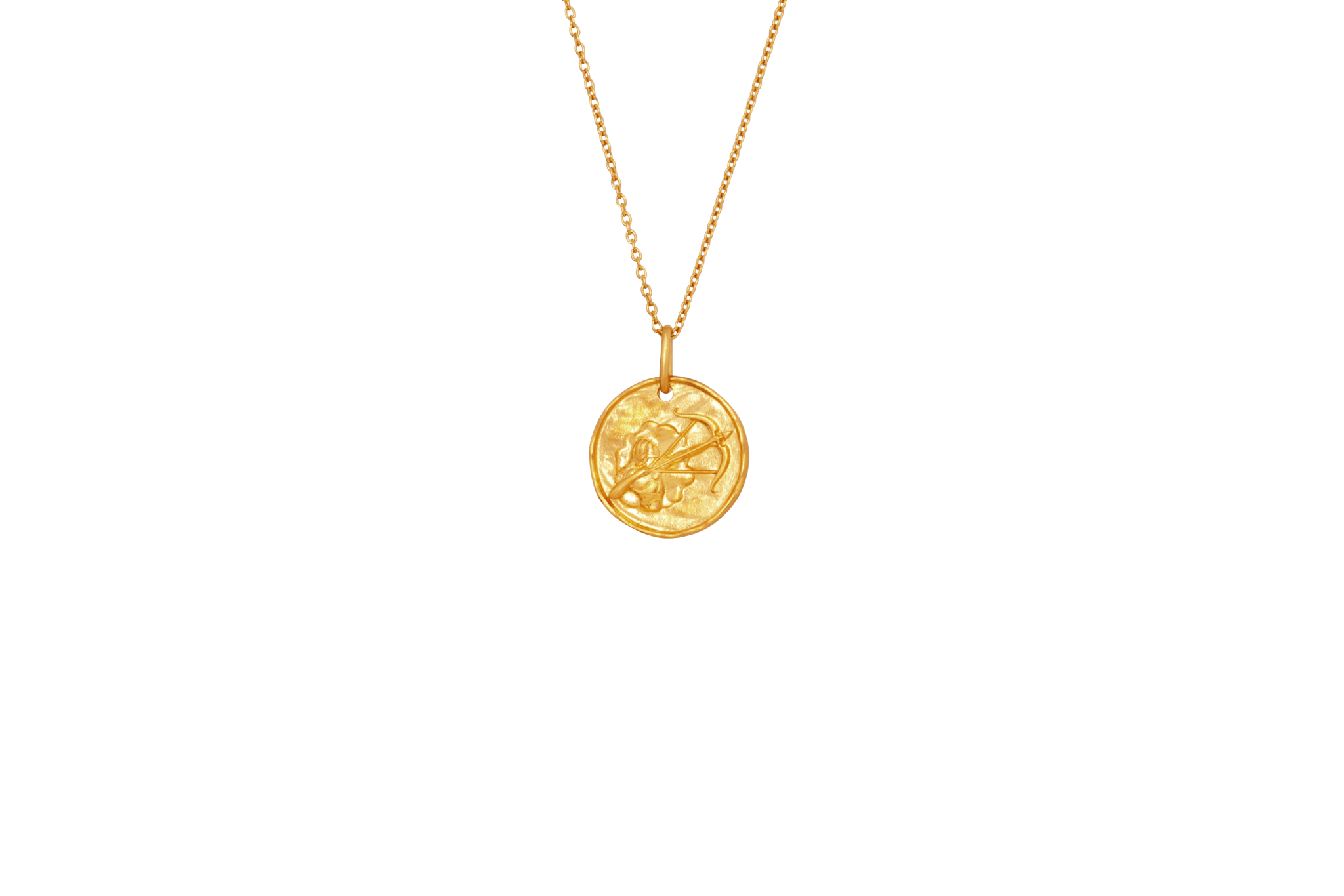The dates of Sagittarius season are November 23 - December 21. Sagittarius is playful and dares to do the unexpected. Sagittarius is intellectual and optimistic in its approach to the world.• This style measures 1,7 cm in diameter.  • This style is made from 100% recycled 22 karat gold-plated 925 sterling silver.  • All our jewellery is stamped with 925 IX on the inside, which is our professional hallmark registered with the Danish Assay Office.