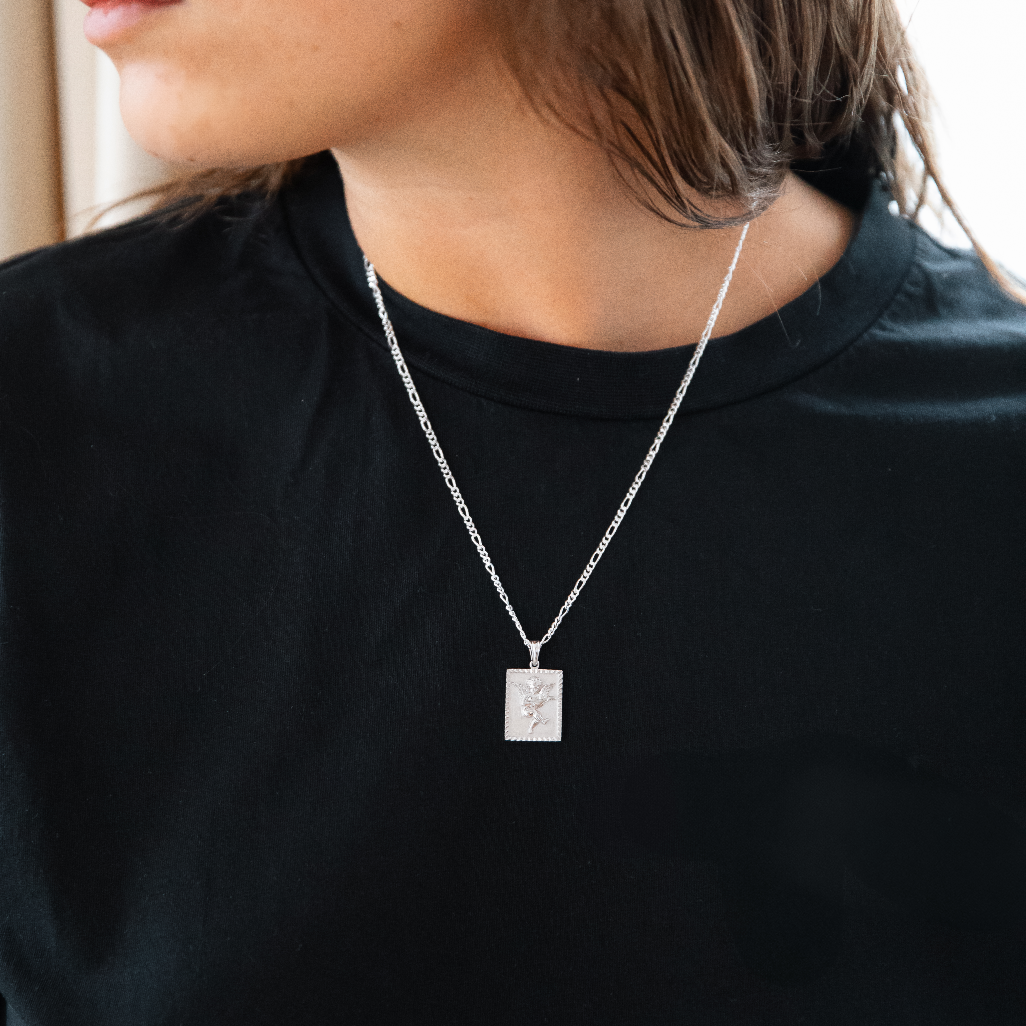Jewellery set consisting of IX Figaro Chain Silver and IX Angel Pendant Silver. When purchasing the set, you save 15% on the necklace and pendant.