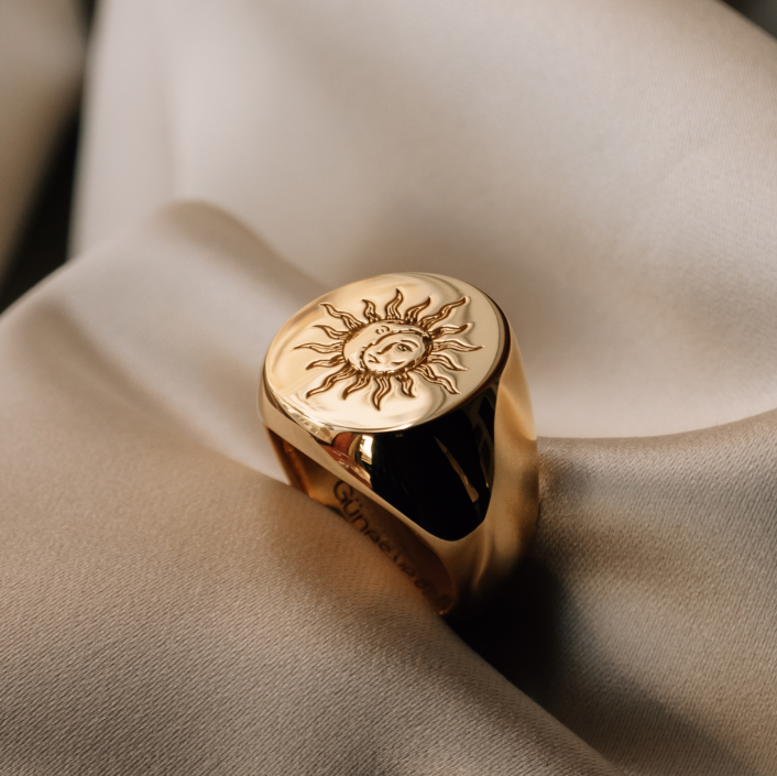 Classic mini oval signet ring with soft edges.• The top-plate of the ring measures 11 x 8 mm.• Suitable for engraving.• All engraved products are non-returnable or refundable.• This style is made from 100% recycled 22 karat gold-plated 925 sterling silver. • All our jewellery is stamped with 925 IX inside, which is our own hallmark registered with the Danish Assay Office.